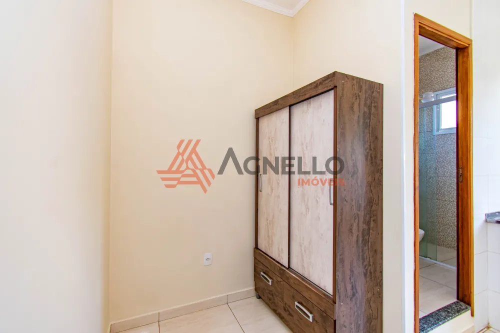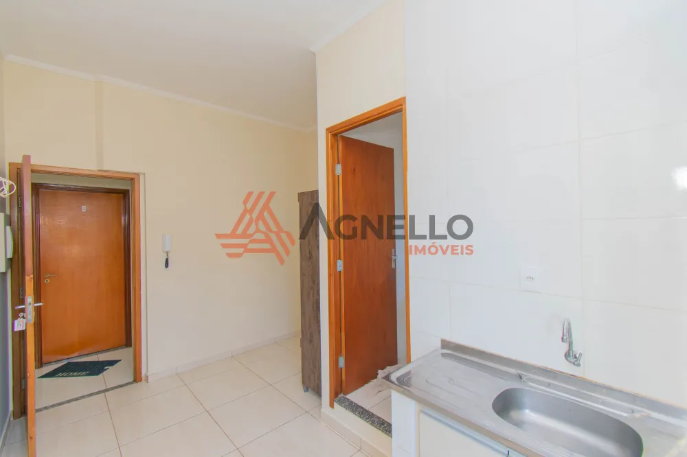 Com 30 m², sala e dormitório integrados, com armário, cozinha com armários, banheiro com box blindex. Condomínio inclui água, luz e internet.