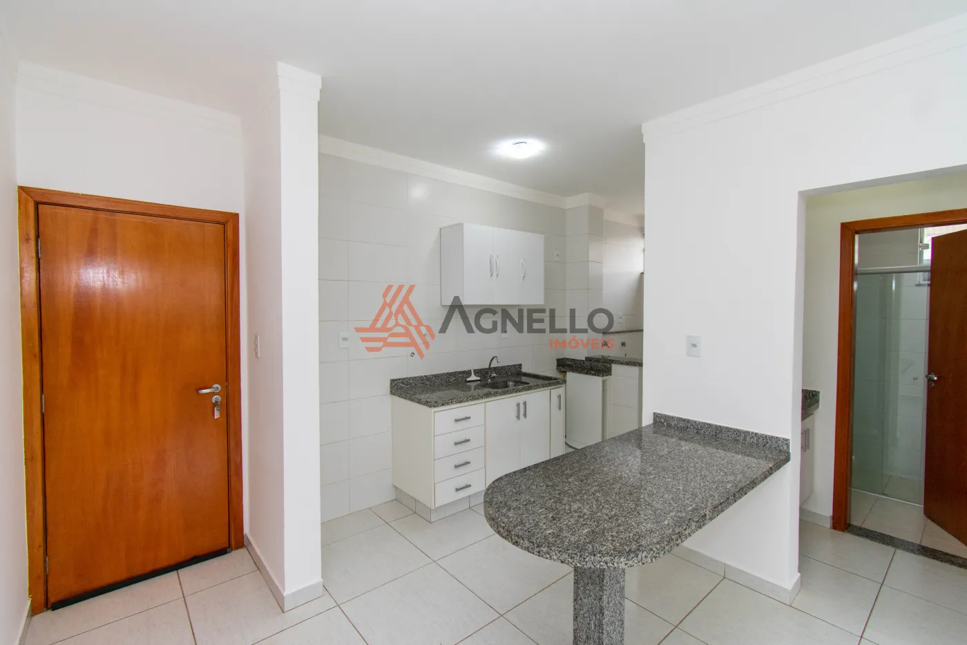 Com 01 dormitório com armário, ampla sala, banheiro, cozinha com gabinete e mesa, lavanderia e 01 vaga na garagem.