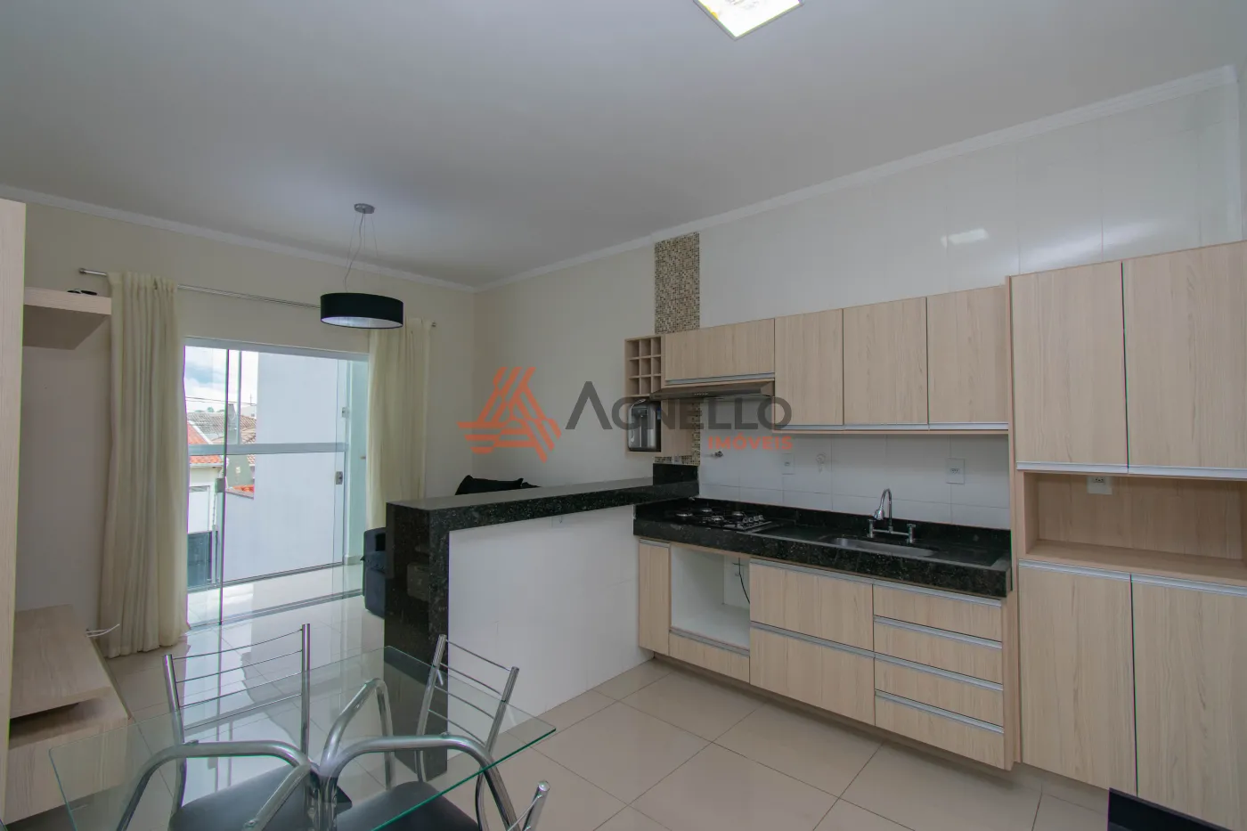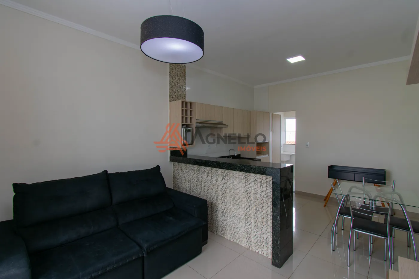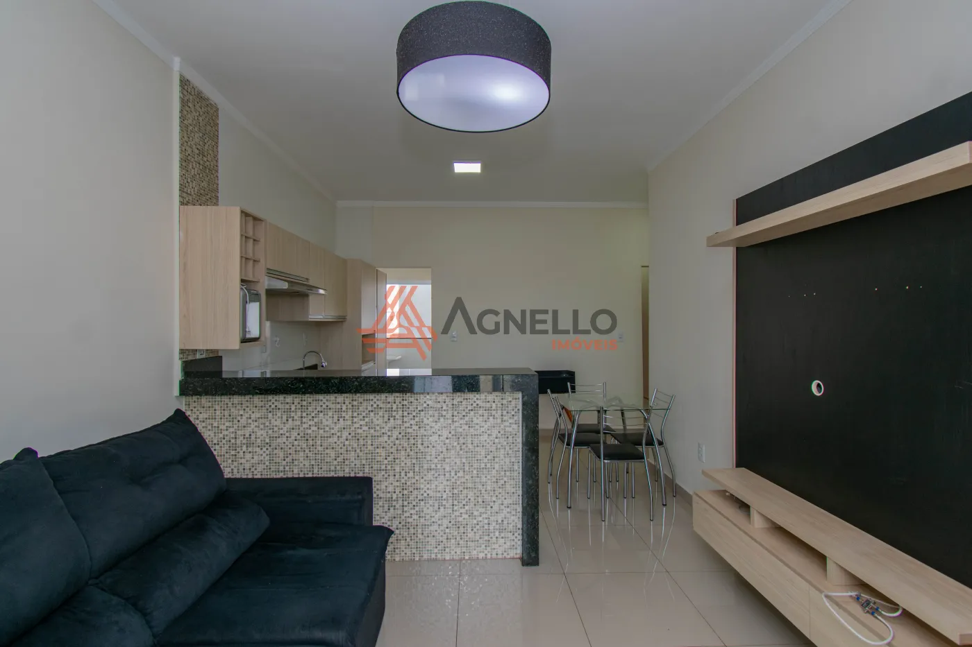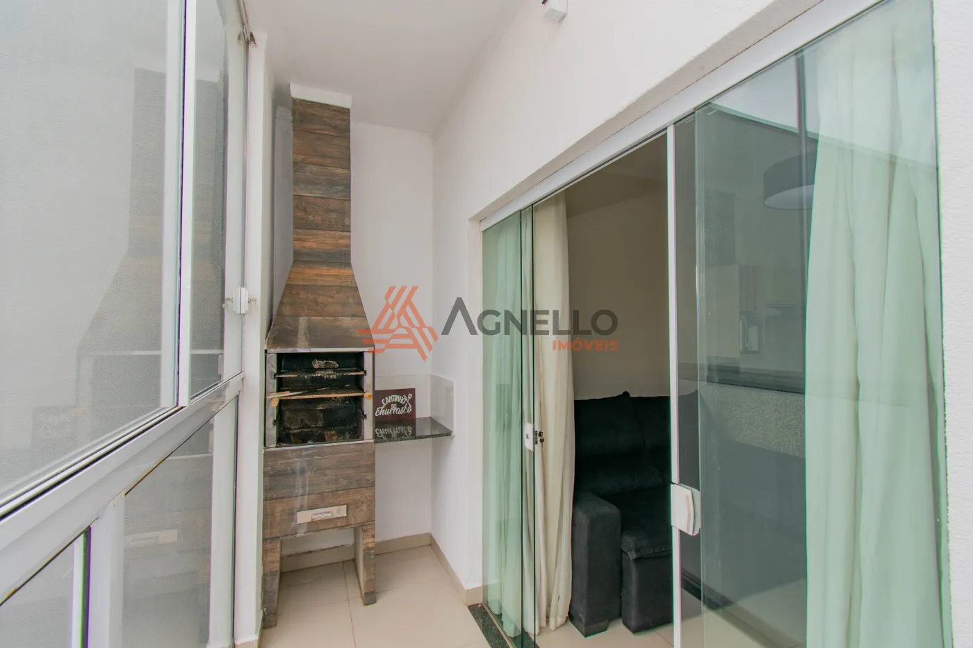 Ótimo apartamento com dois dormitórios sendo uma suíte, cozinha com armários, cooktop, coifa e mesa com quatro cadeiras, lavanderia, sala de TV com sofá e painel, varanda gourmet com churrasqueira. Duas vagas de garagem.