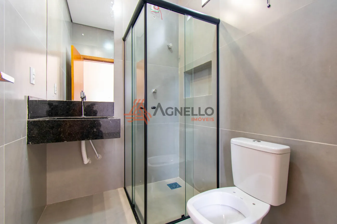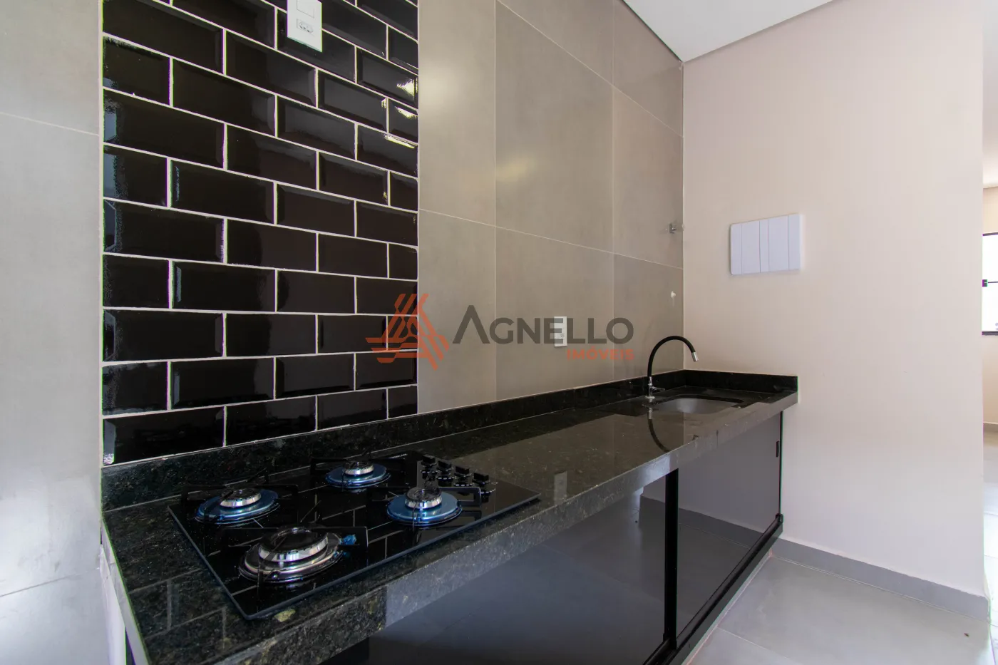 Apartamento térreo, com duas suítes, banheiros com box blindex, sala, cozinha com gabinete e cooktop, lavabo, lavanderia, área de churrasco e duas vagas de garagem.
