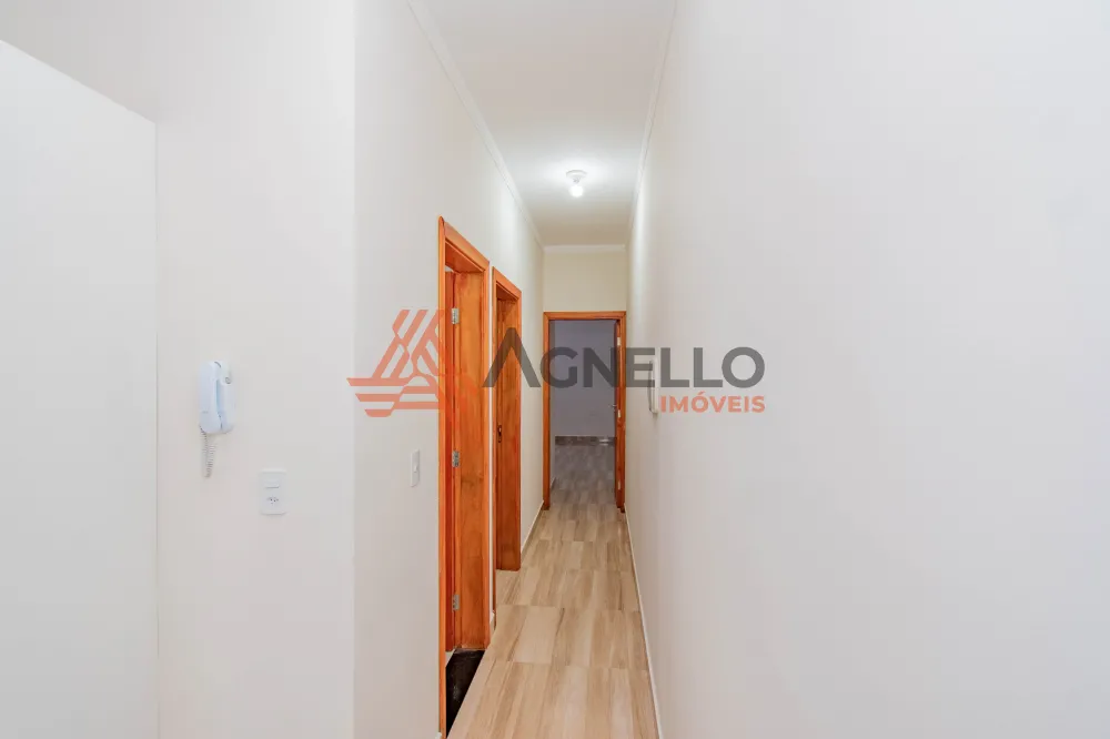 Apartamento térreo, com dois dormitórios sendo uma suíte, sala, cozinha com armários, lavanderia, área de claridade, banheiro social e garagem para dois carros.