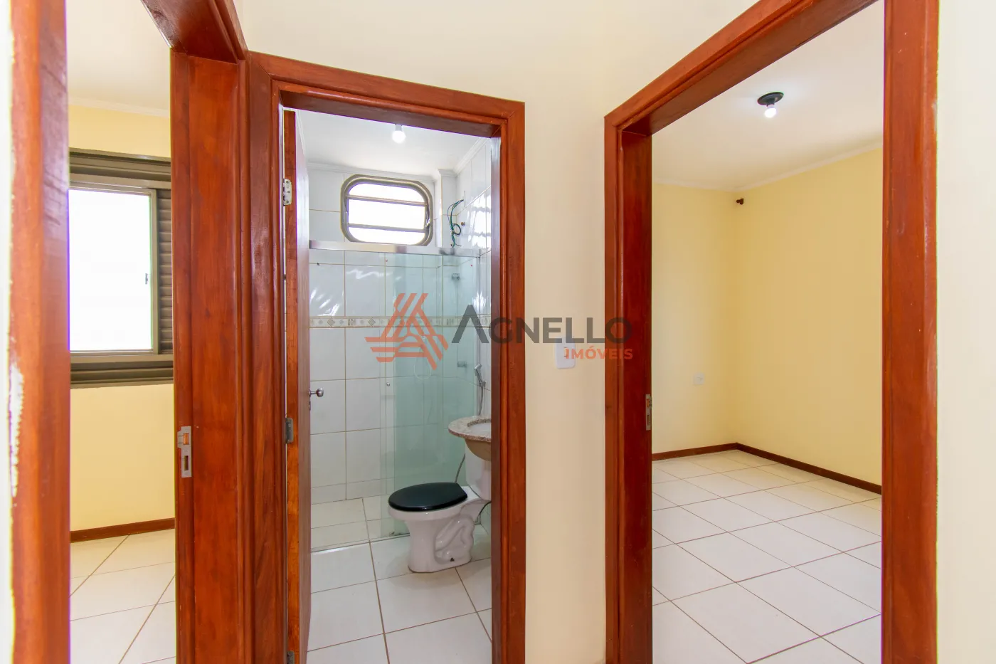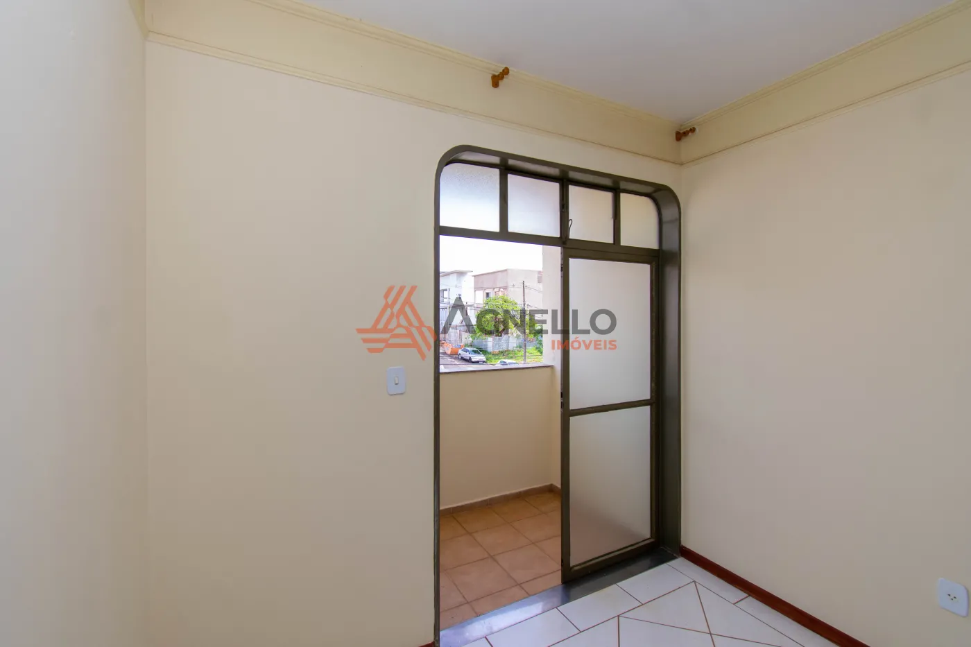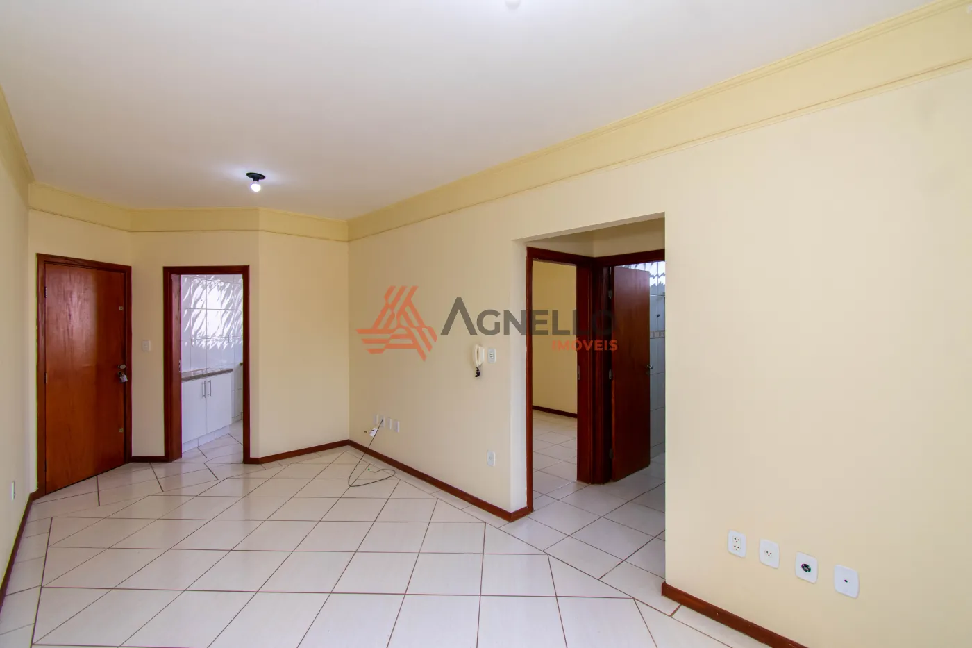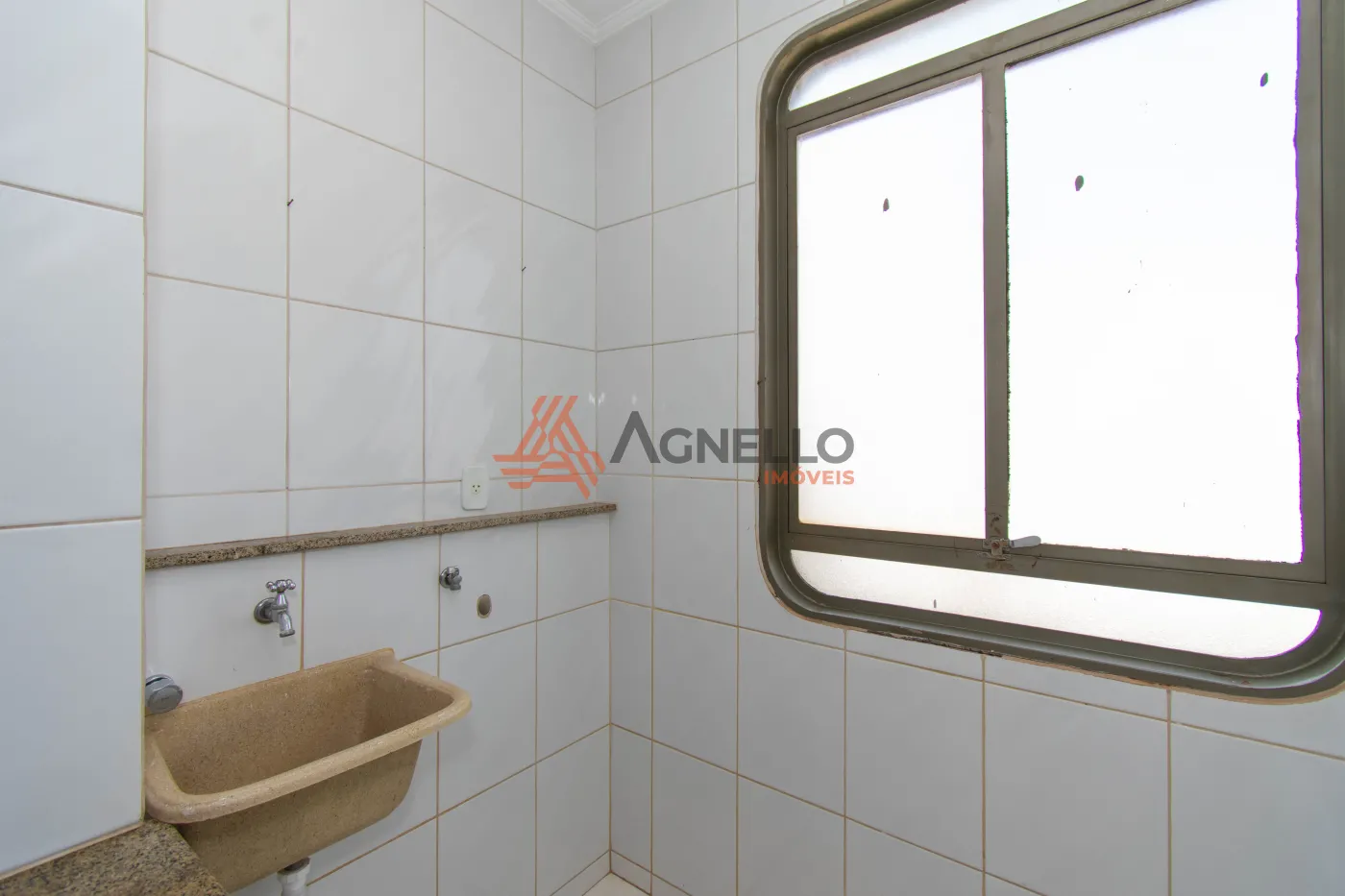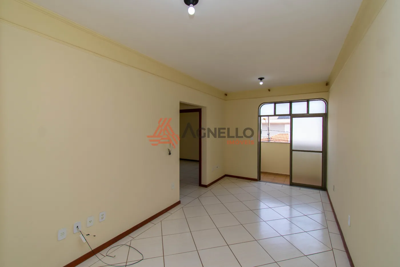 Apartamento com dois dormitórios, ampla sala de estar com sacada, banheiro social, cozinha com armários, lavanderia e uma vaga na garagem.