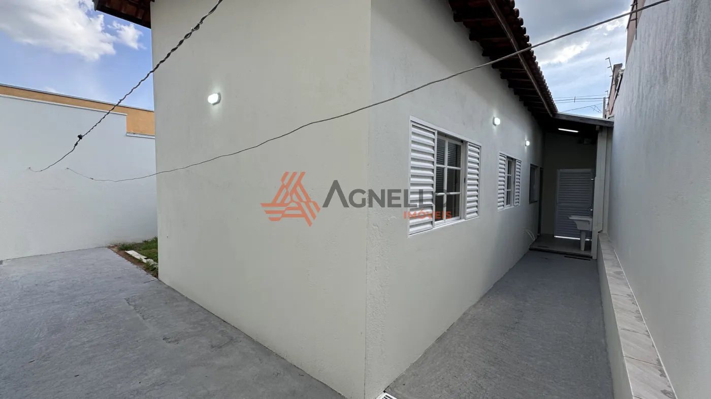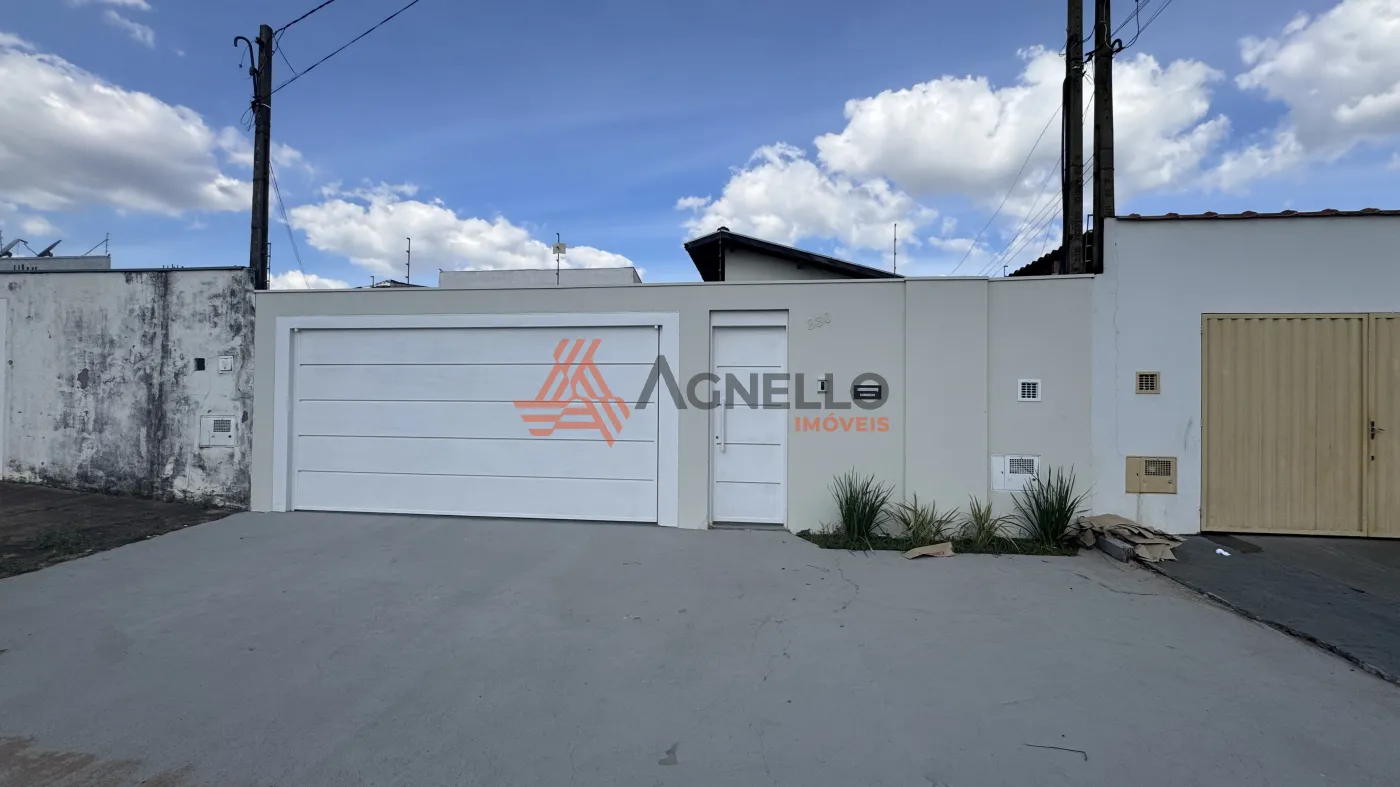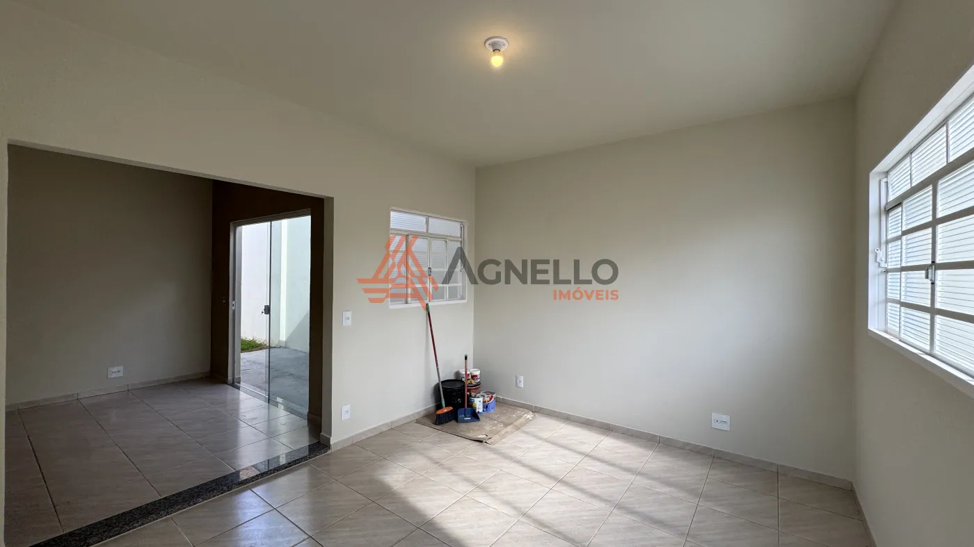 Imóvel com bom acabamento, dois dormitórios, banheiro social, sala, cozinha, lavanderia, quintal e garagem para quatro carros.