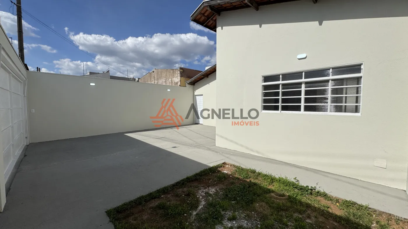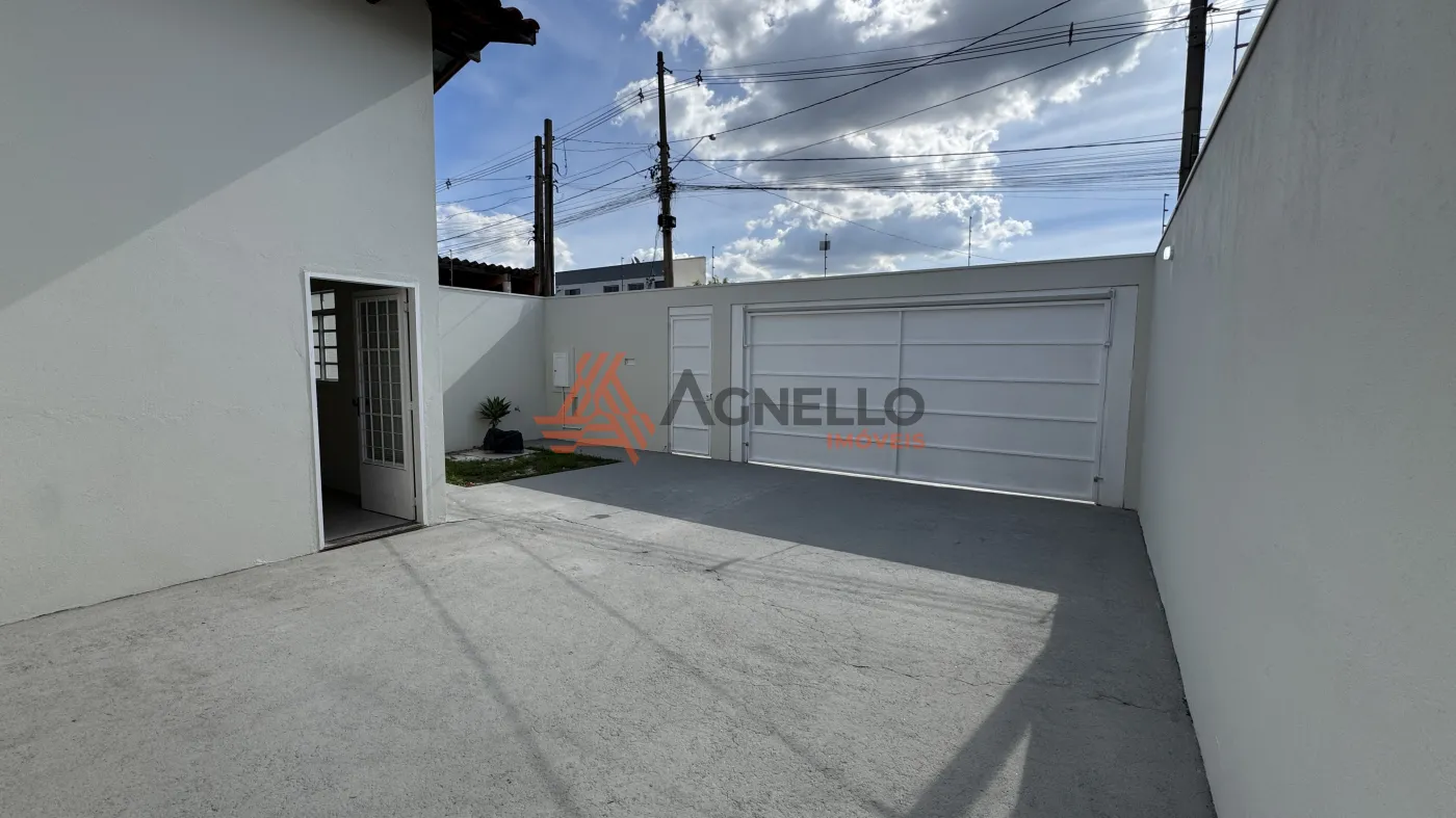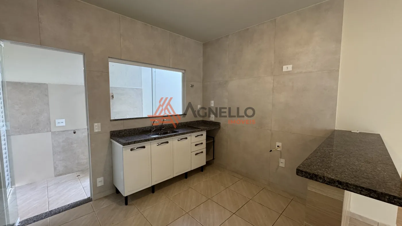 Imóvel com bom acabamento, dois dormitórios, banheiro social, sala, cozinha, lavanderia, quintal e garagem para quatro carros.