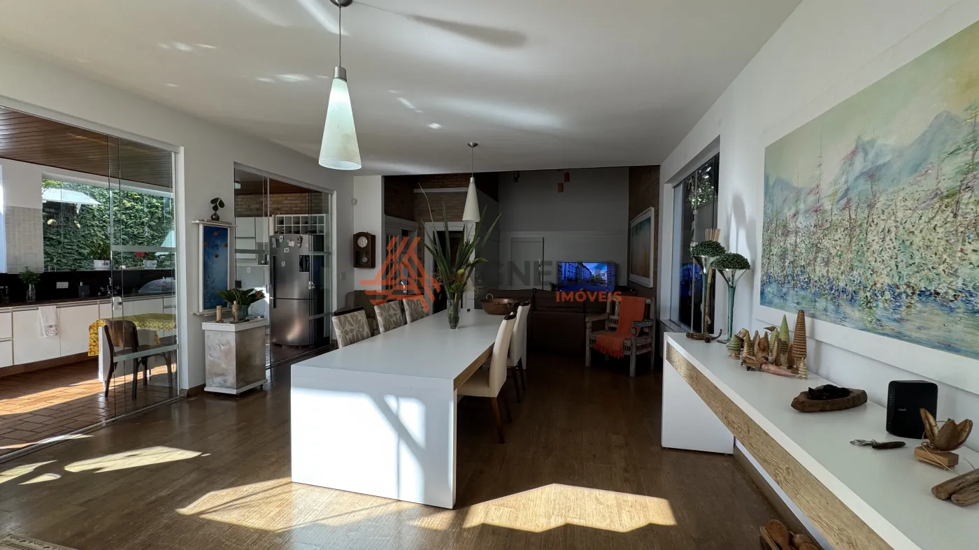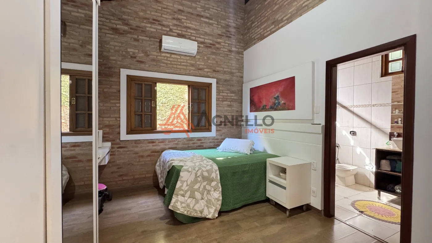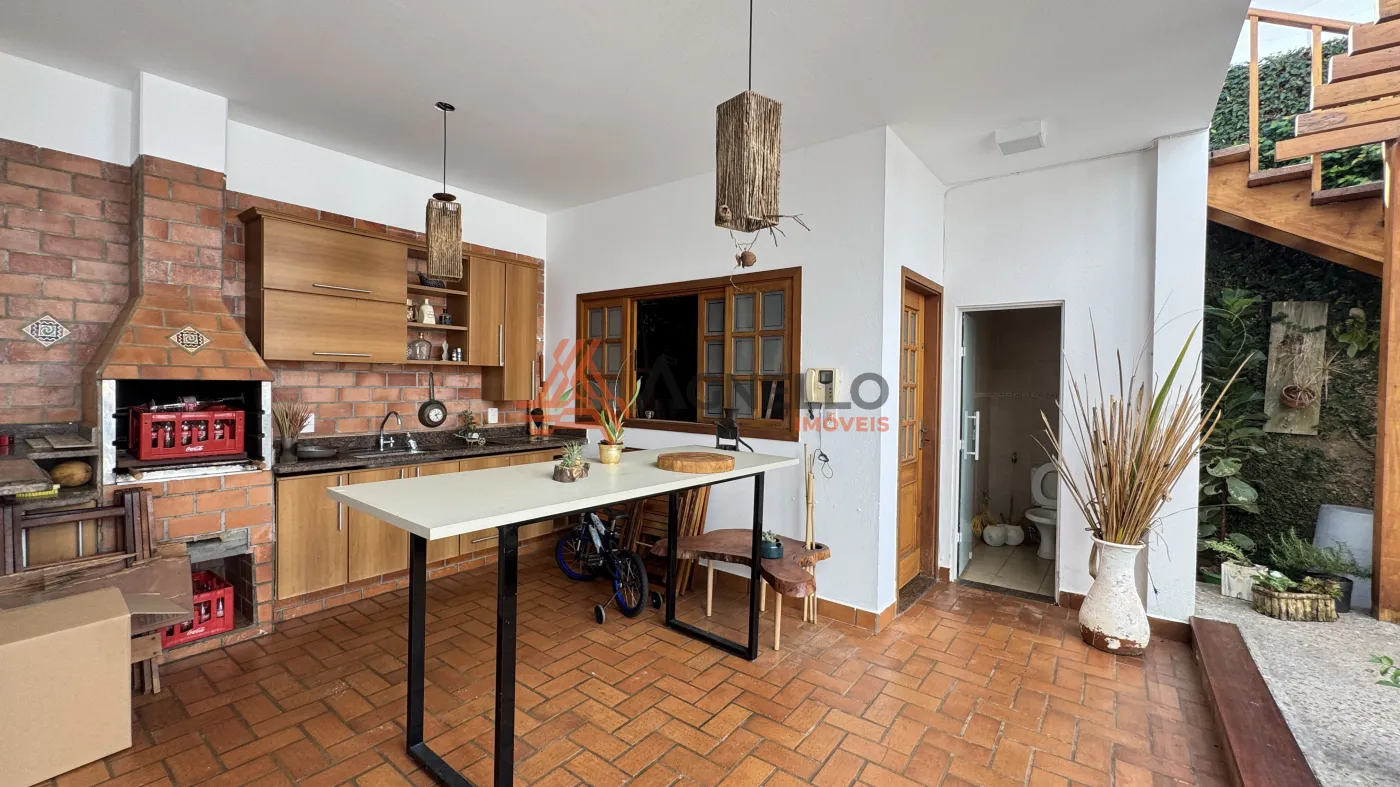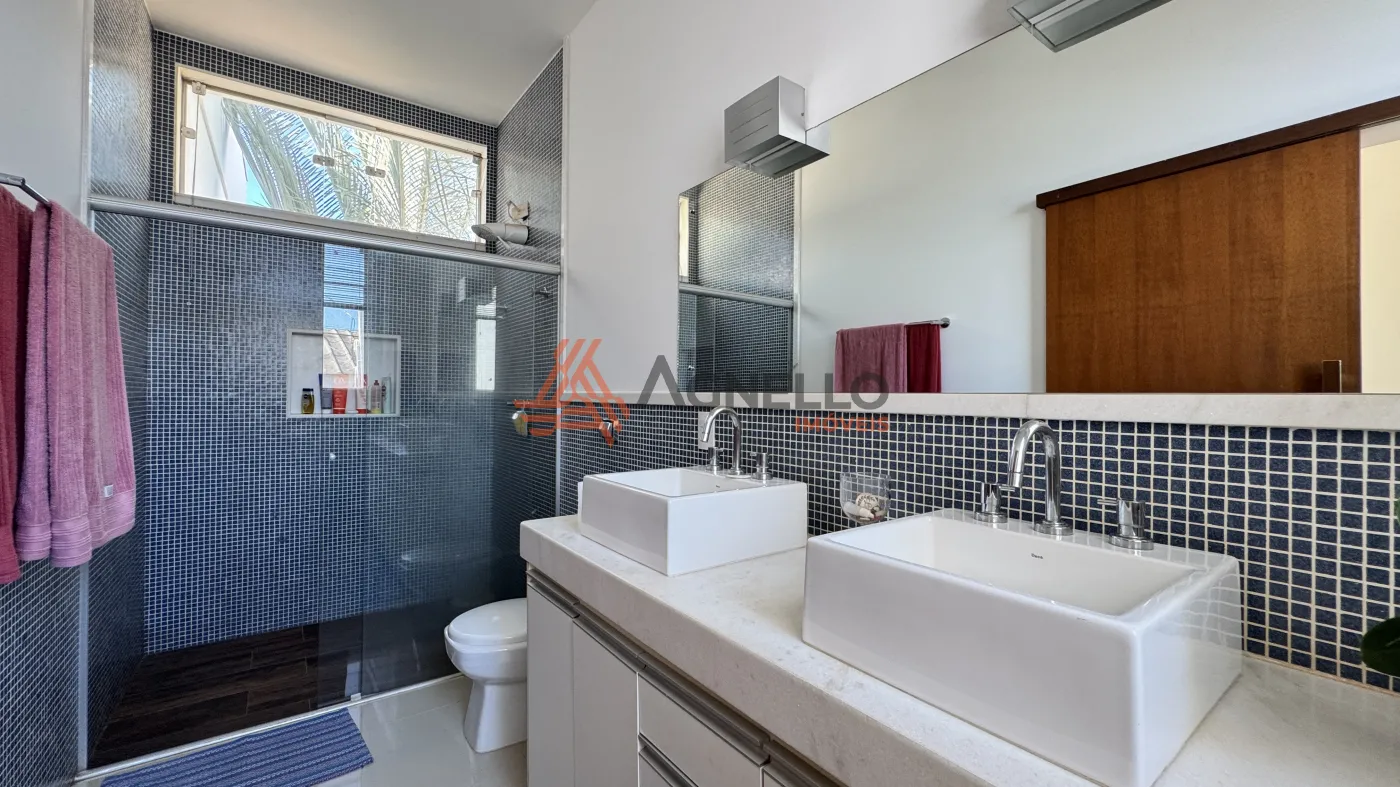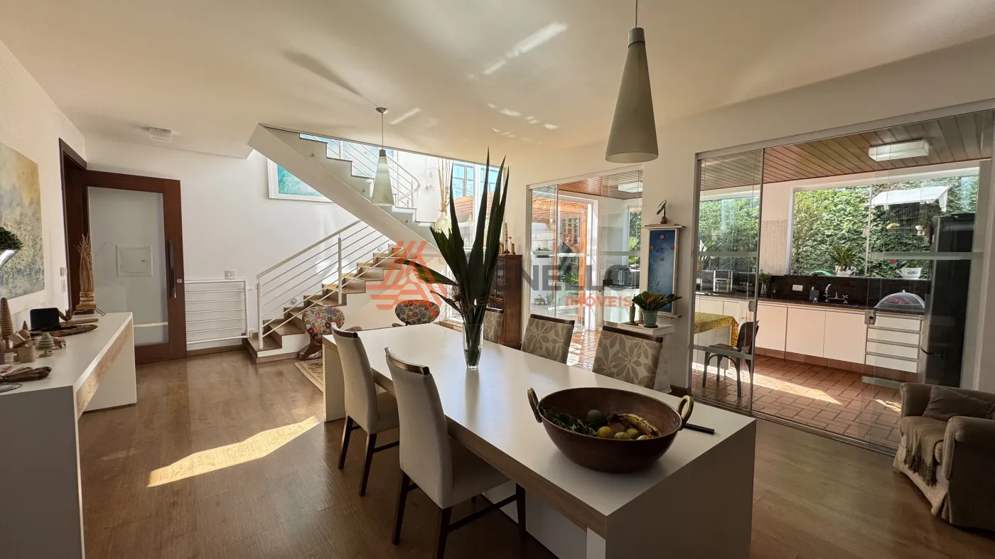 Com quatro dormitórios sendo uma suíte térrea, uma suíte no piso superior, com closet, banheira e sacada, e dois quartos no piso superior, sala ampla em conceito aberto, para 2 ambientes, cozinha com armários, lavabo, área gourmet com pergolado, lavabo externo, quarto de despejo, despensa, lavanderia e garagem coberta.