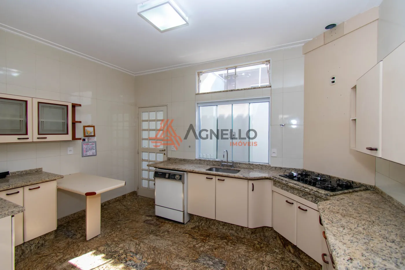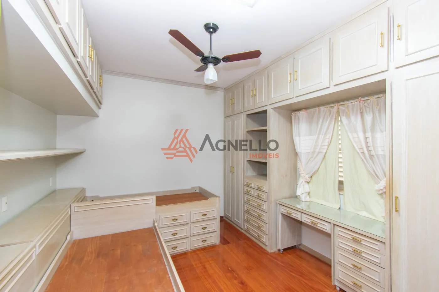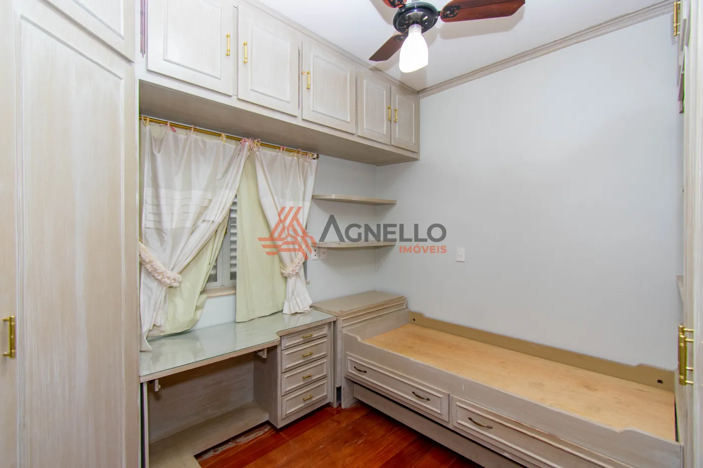 Imóvel amplo, rico em armários, com três dormitórios sendo uma suíte, banheiro social, escritório, salas de estar e jantar, lavabo e cozinha. Área de serviço com banheiro e quarto. Garagem coberta para 2 carros.