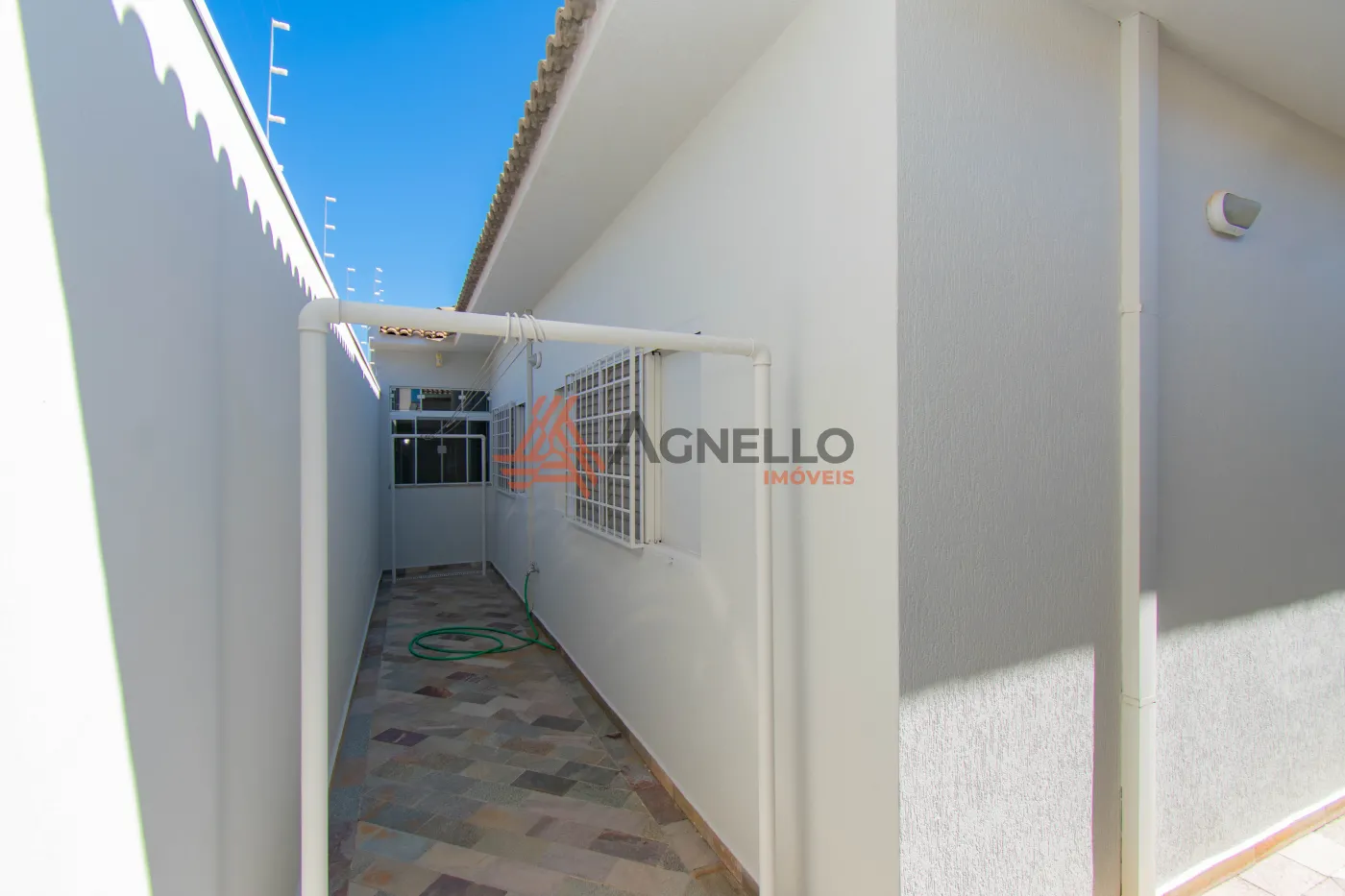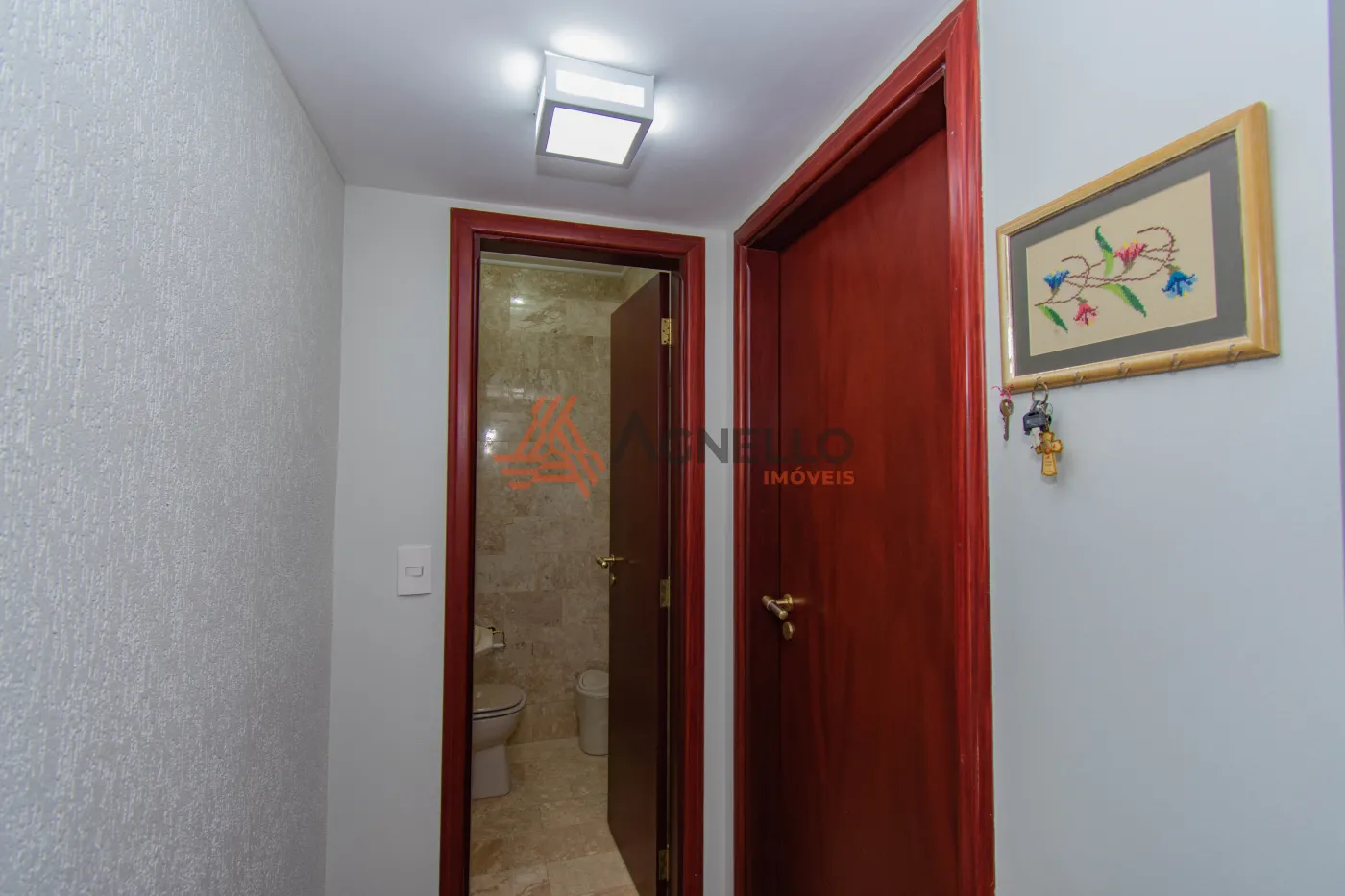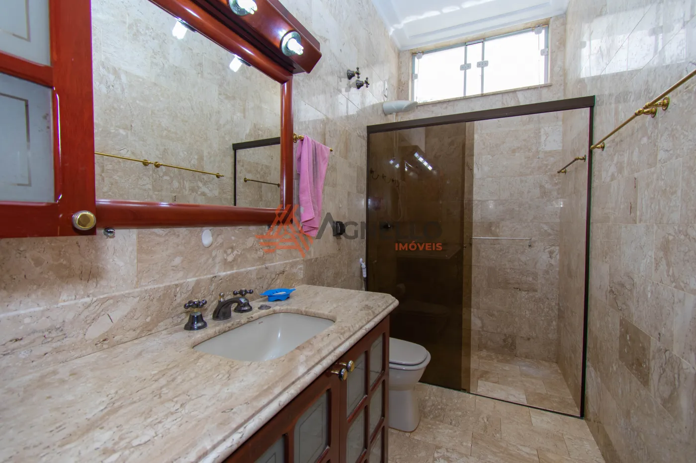 Imóvel amplo, rico em armários, com três dormitórios sendo uma suíte, banheiro social, escritório, salas de estar e jantar, lavabo e cozinha. Área de serviço com banheiro e quarto. Garagem coberta para 2 carros.