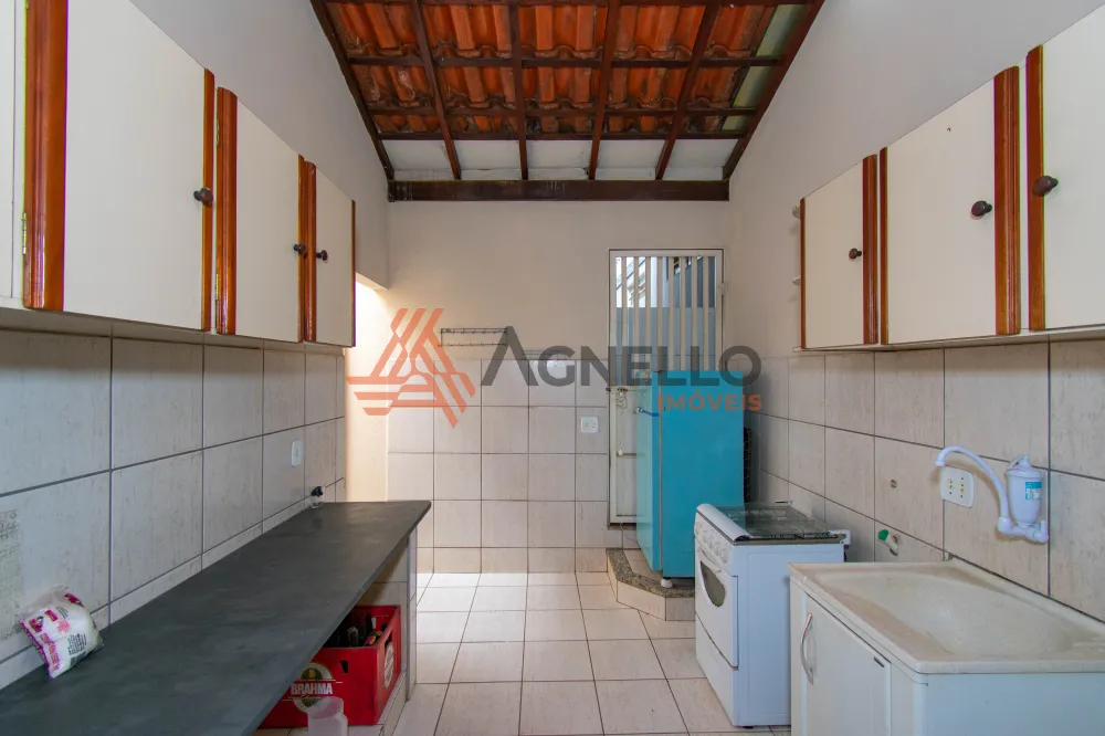 Com dois dormitórios sendo uma suíte, sala estar, jantar, lavabo, cozinha, lavanderia, varanda e garagem para um carro.