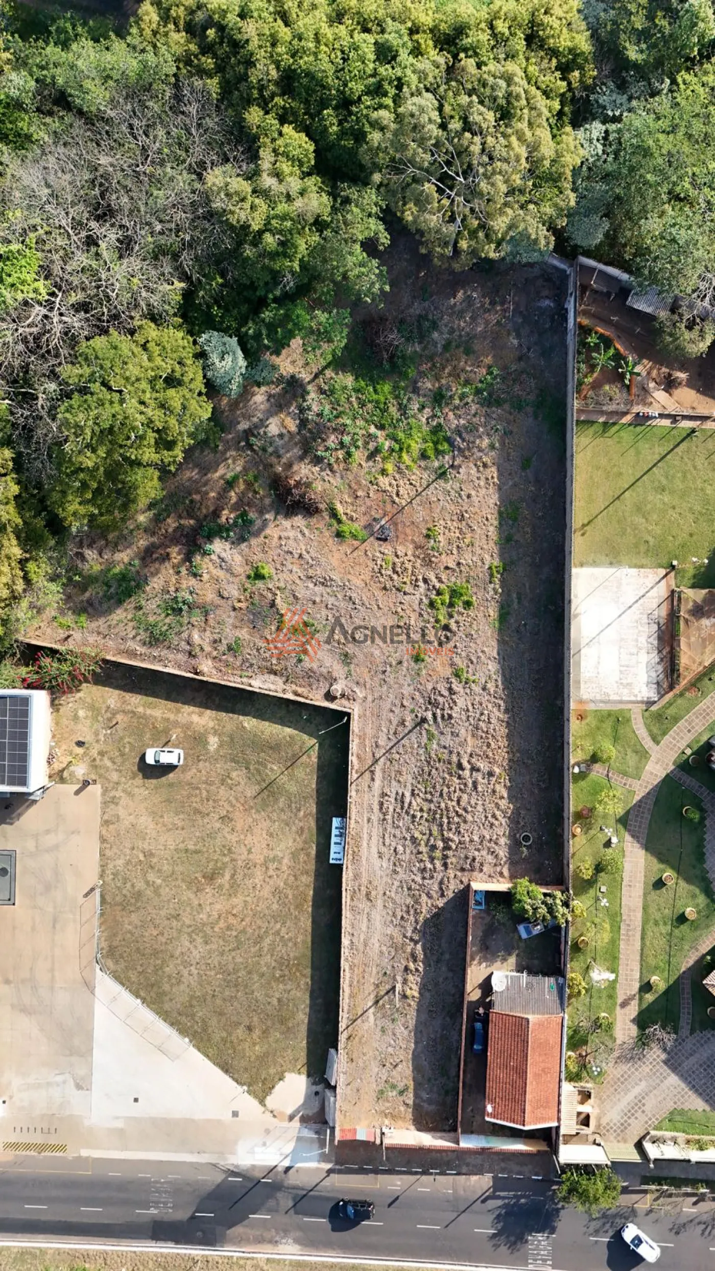 São 3.300 m² de terreno livre, completamente murado, em área total de aproximadamente 5.000 m², com 23 metros de frente, além de casa com 02 dormitórios, sala, cozinha, banheiro e varanda.