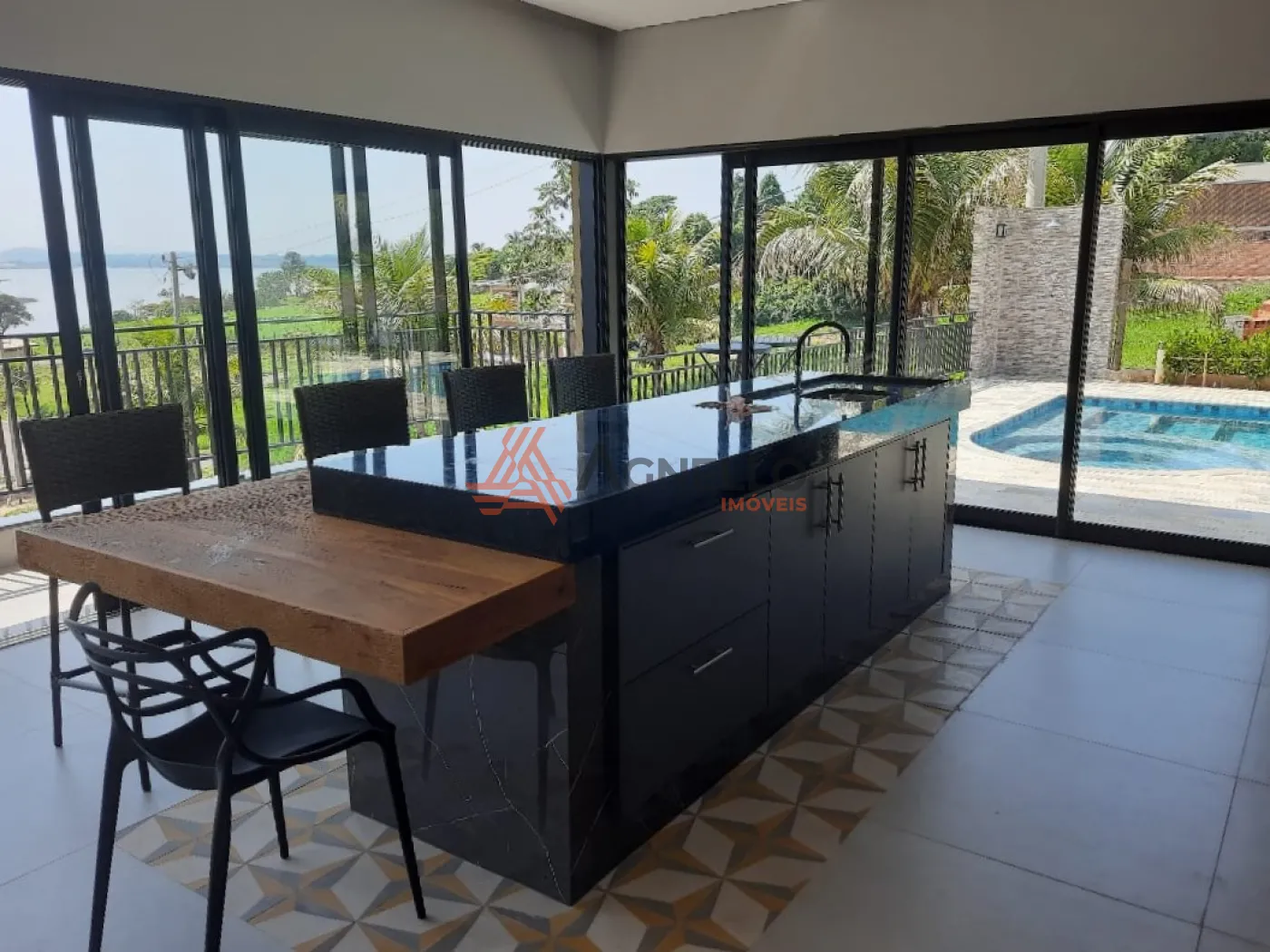 Ótima residência, com fino acabamento, possuindo 3 suítes, sendo 2 com closet, banheiros sociais, sala de estar, jantar e TV, cozinha americana com ilha, armários, cooktop, coifa, forno, micro-ondas, churrasqueira e despensa, linda piscina, jardim e 4 vagas de garagem.