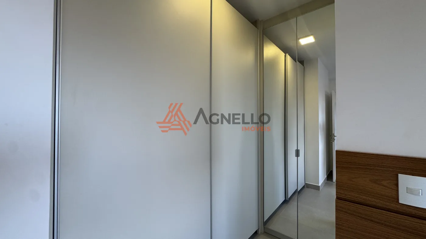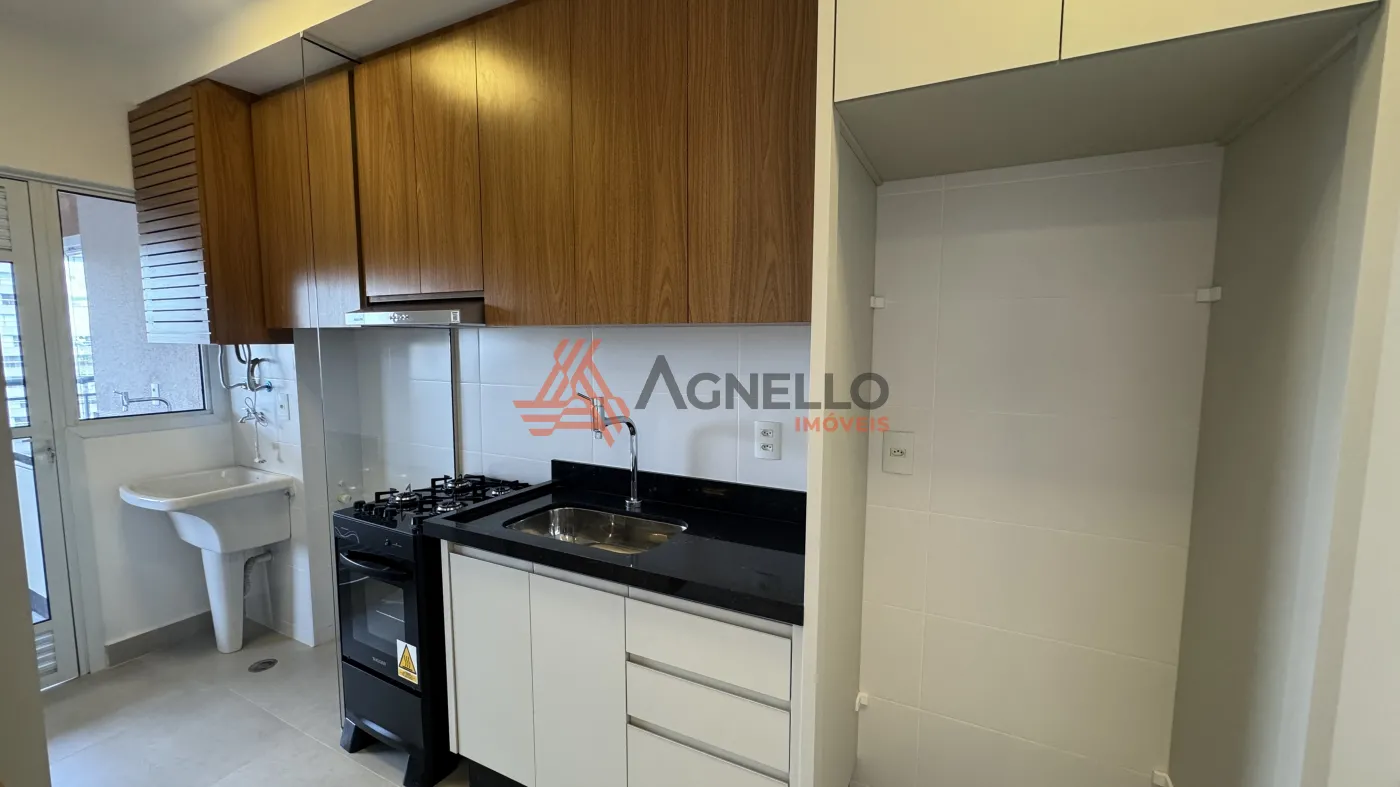 Imóvel com móveis planejados, dois dormitórios sendo uma suíte, banheiro social, sala, varanda gourmet, cozinha, lavanderia e uma vaga de garagem coberta.