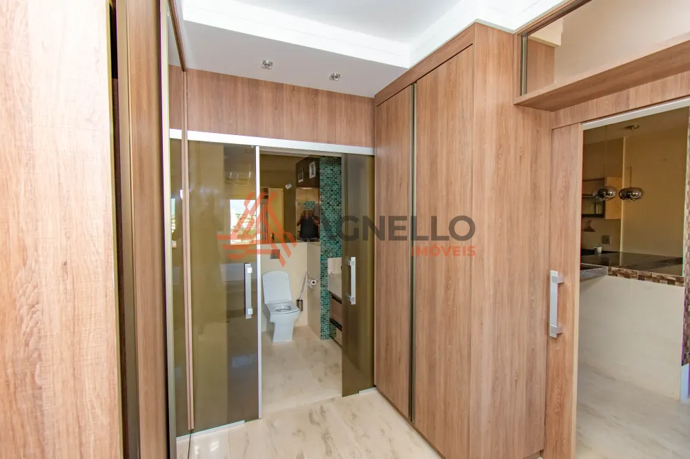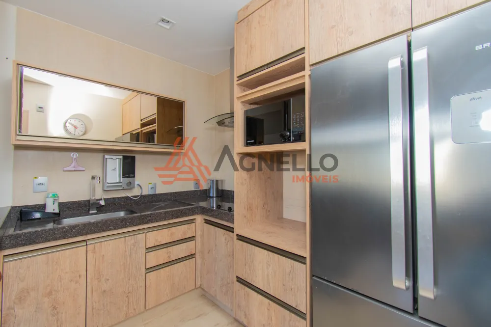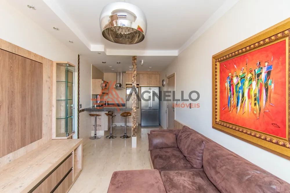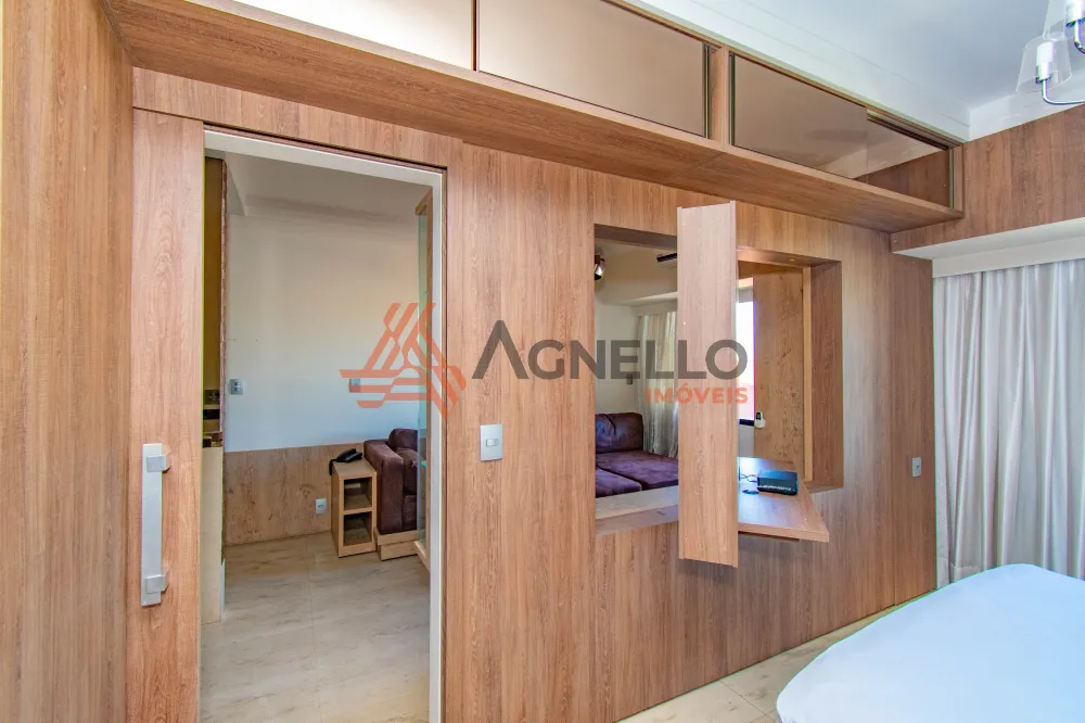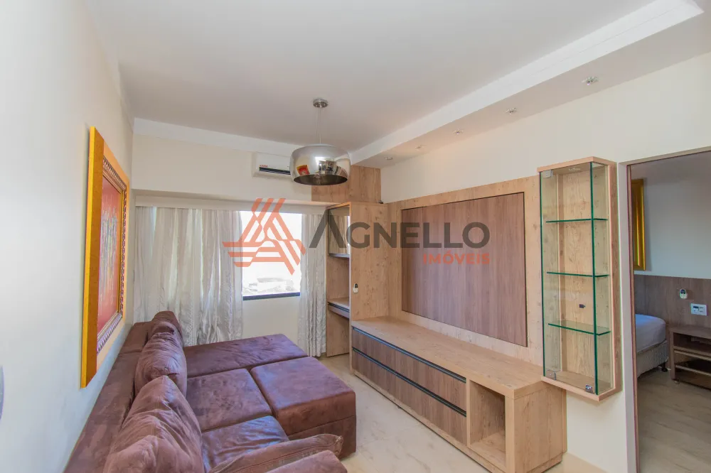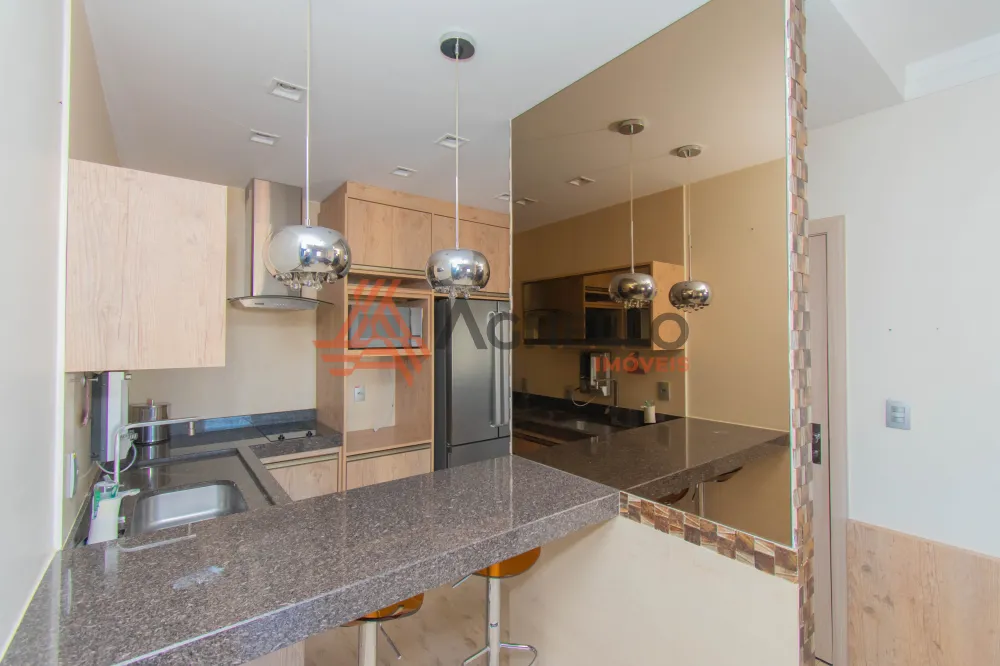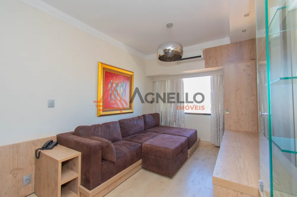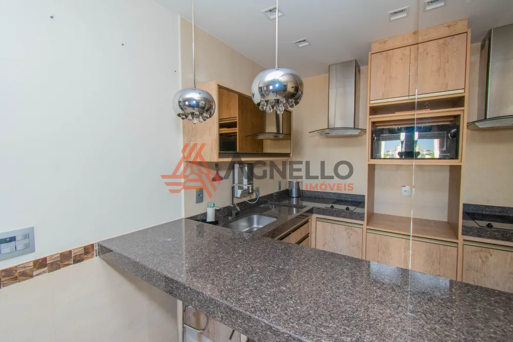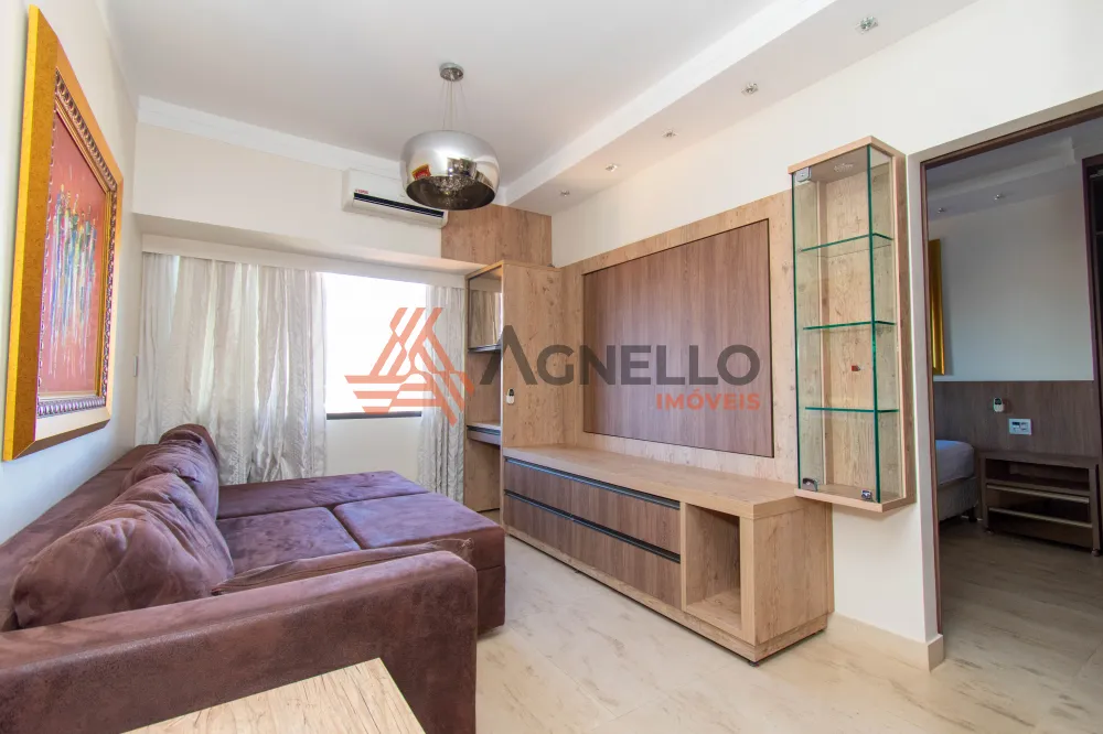 Apartamento todo mobiliado, com 1 suíte, sala de TV, cozinha americana com armários e 1 vaga de garagem.