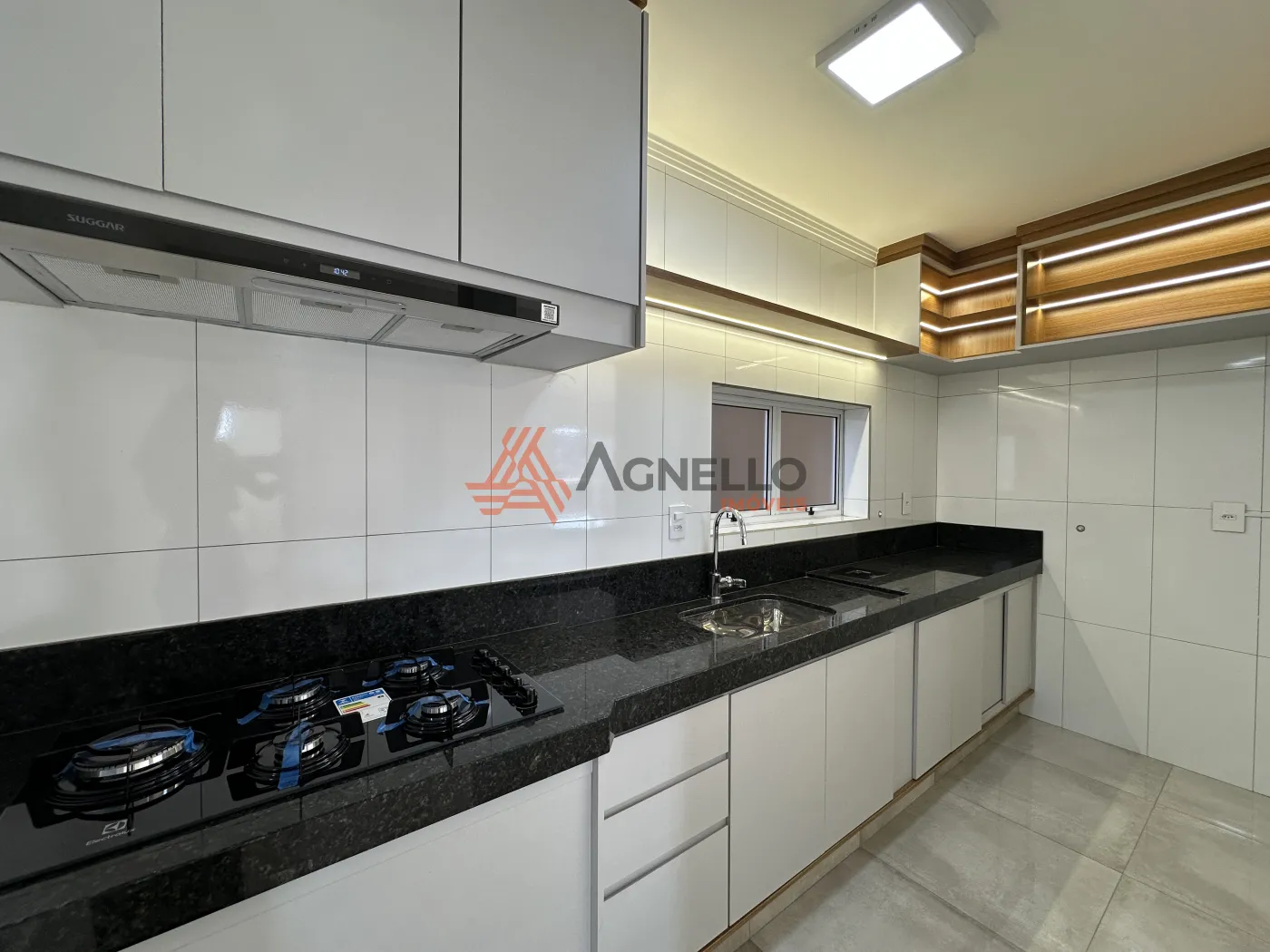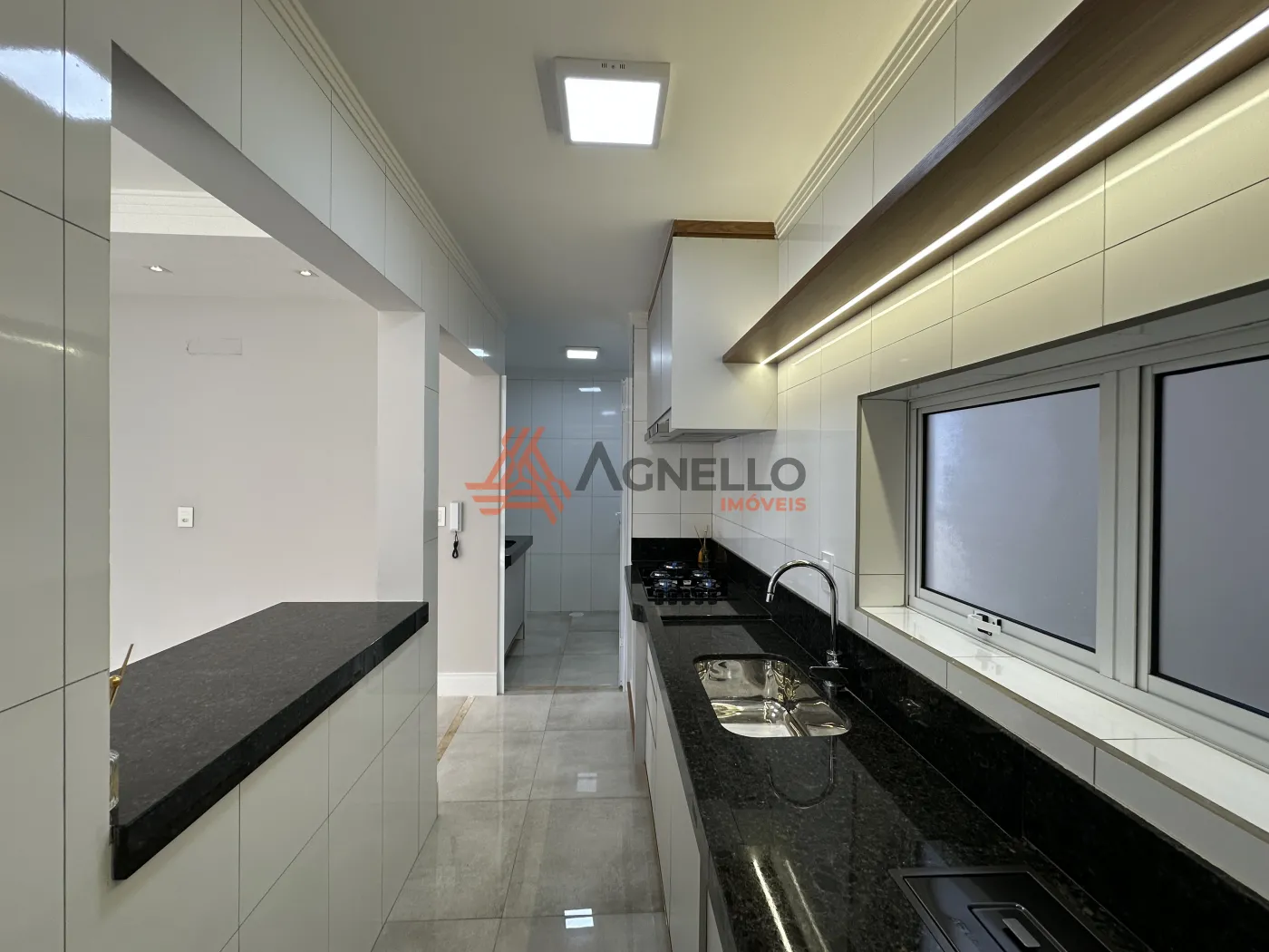 Com 3 dormitórios, sendo 1 suíte, banheiro social, sala espaçosa com sacada, lavabo, cozinha com armários, lavanderia e 2 vagas de garagem.
