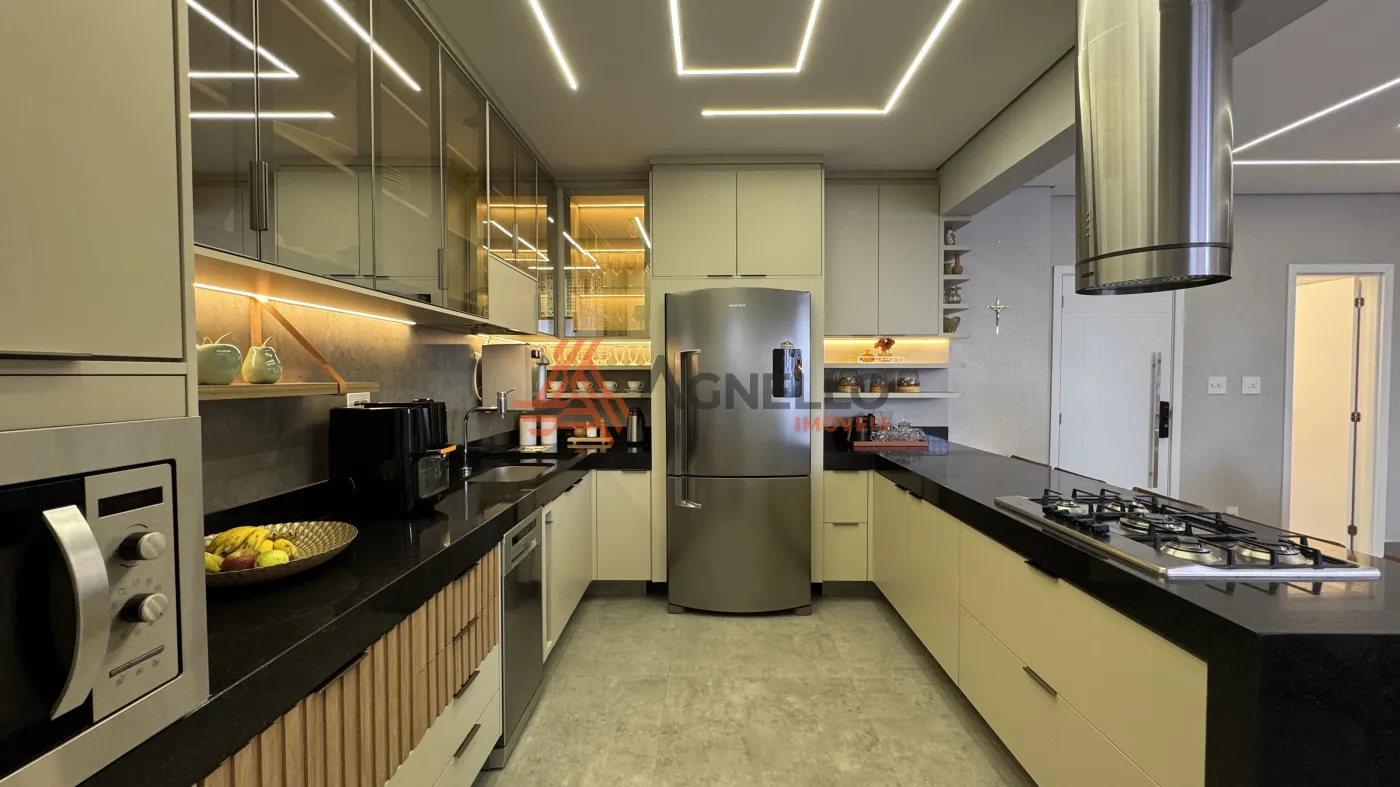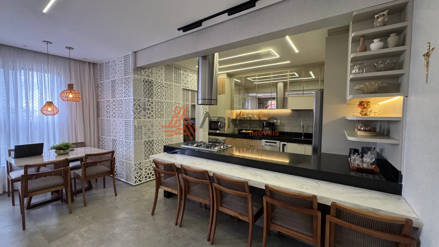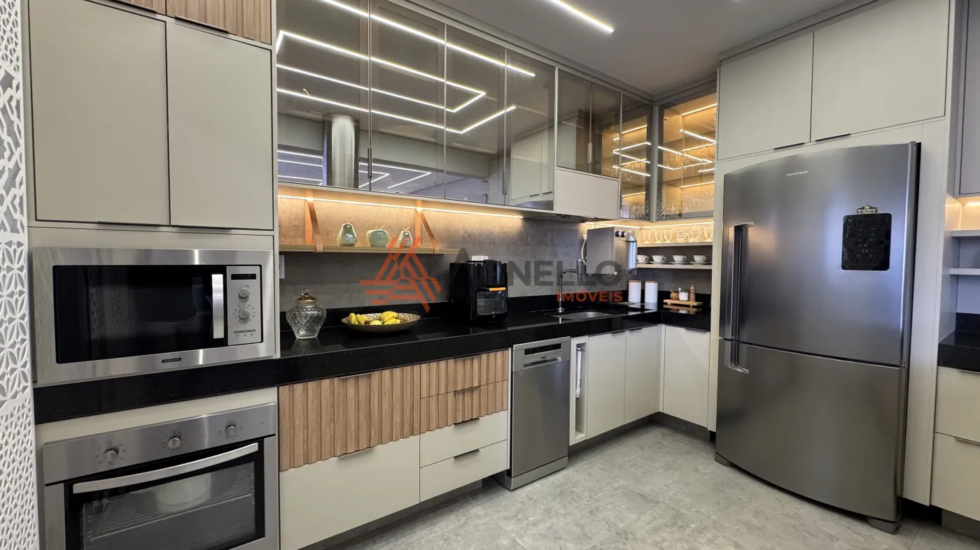 Imóvel de alto padrão, com fino acabamento e rico em móveis planejados. Três suítes, salas de estar, jantar e TV, lavabo, sacada, cozinha com ilha, cooktop, coifa, forno e micro-ondas. Três vagas de garagem coberta.