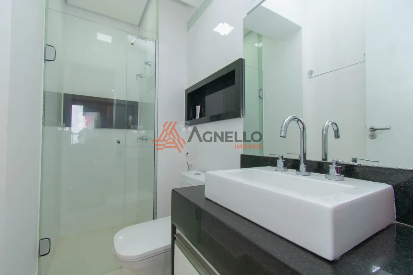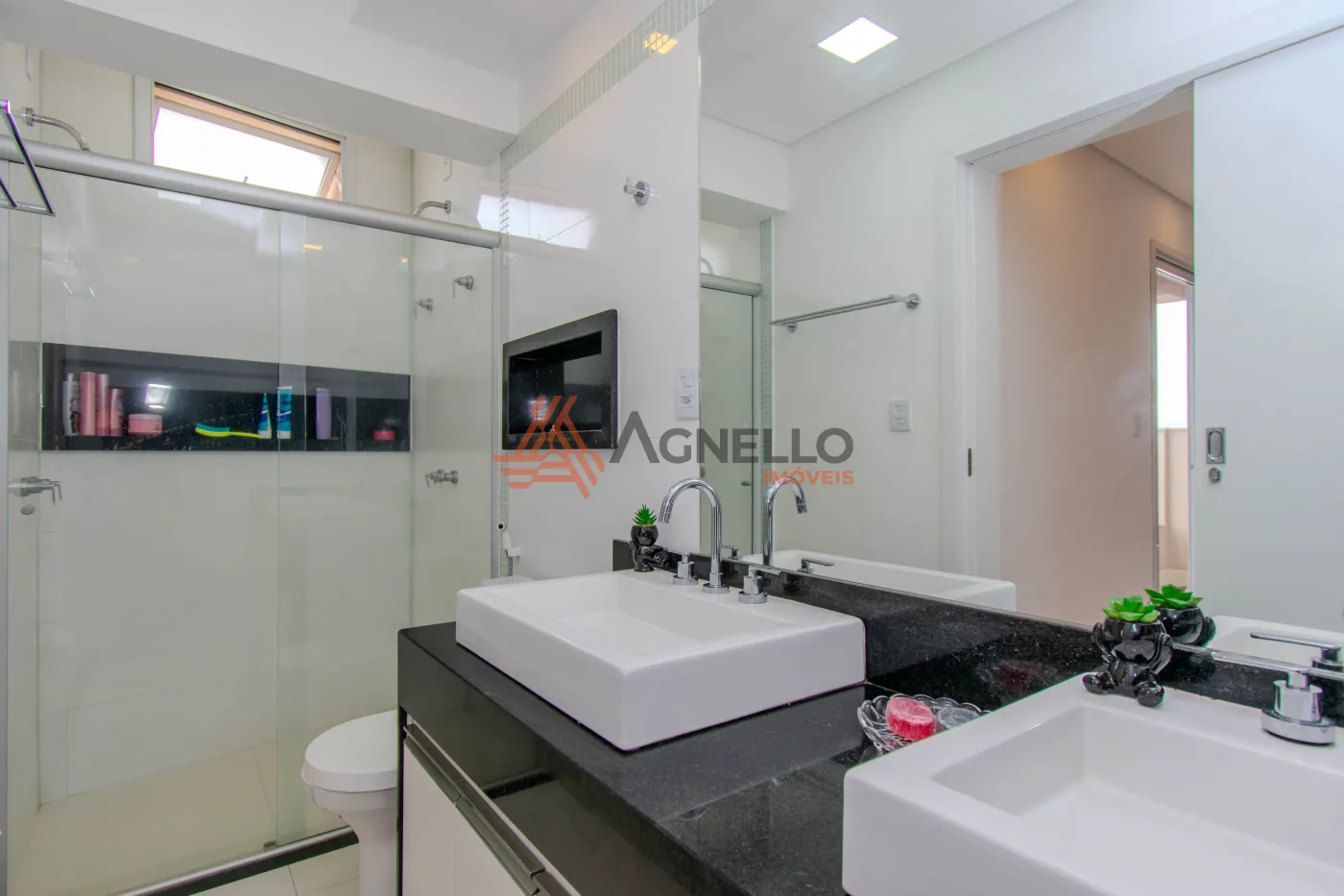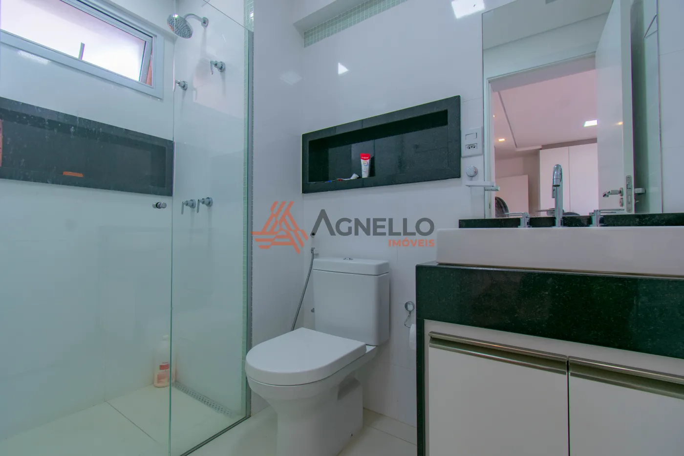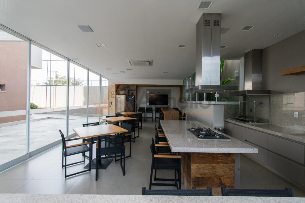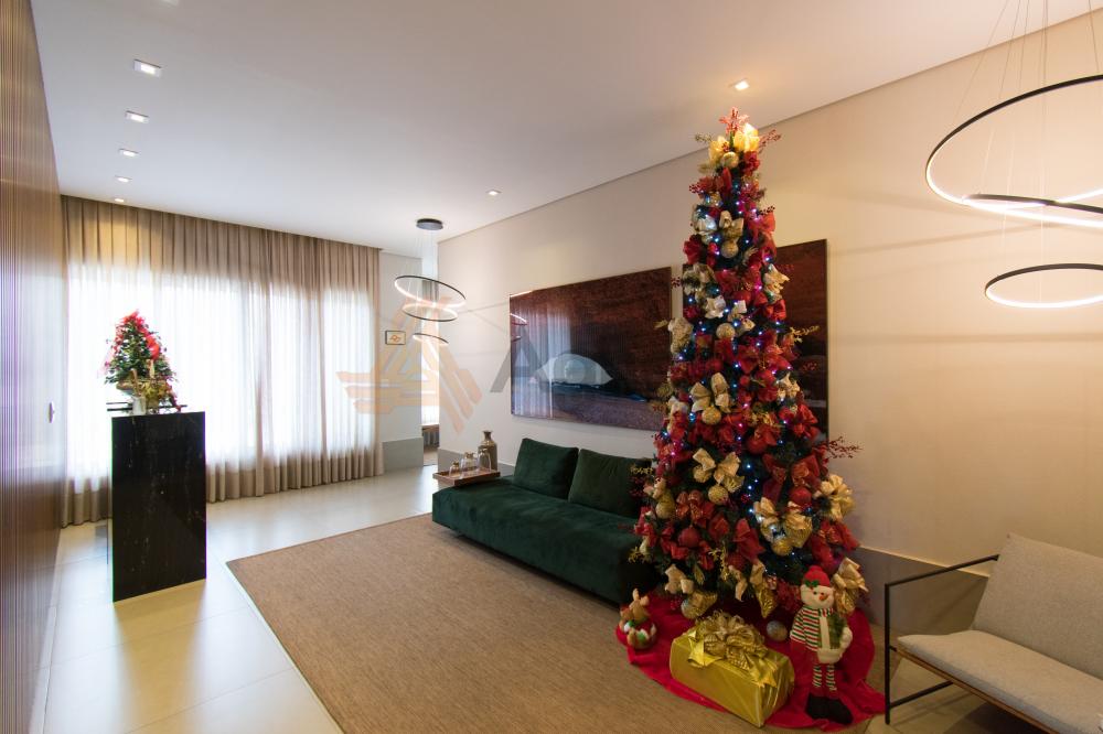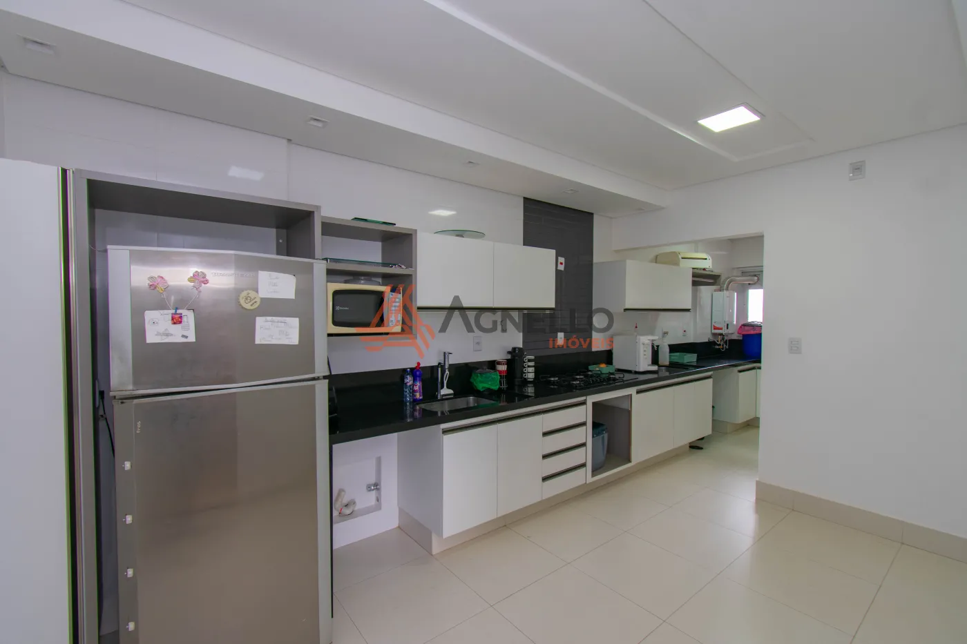 Apartamento com três suítes com armários e sacada, ampla sala de estar, sacada, cozinha com armários, lavanderia, banheiro social e três vagas na garagem.