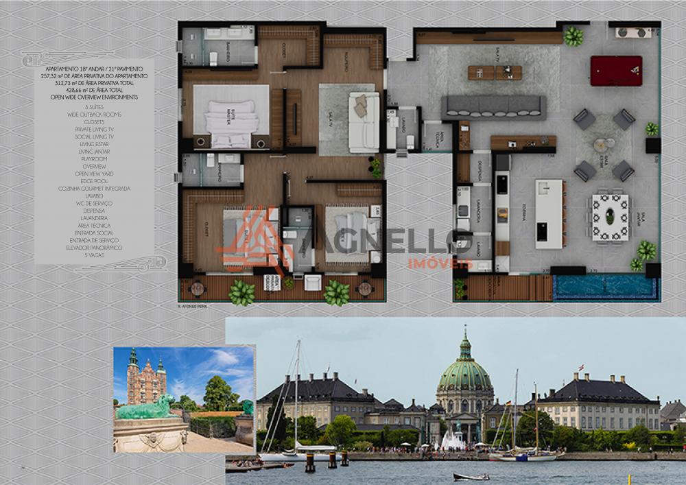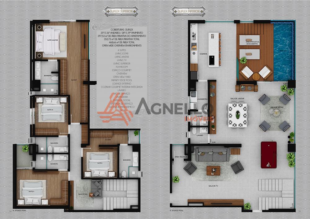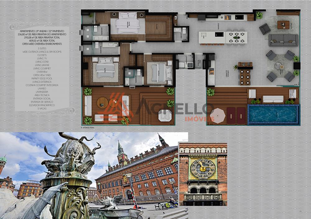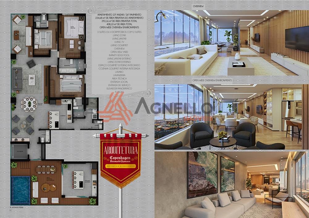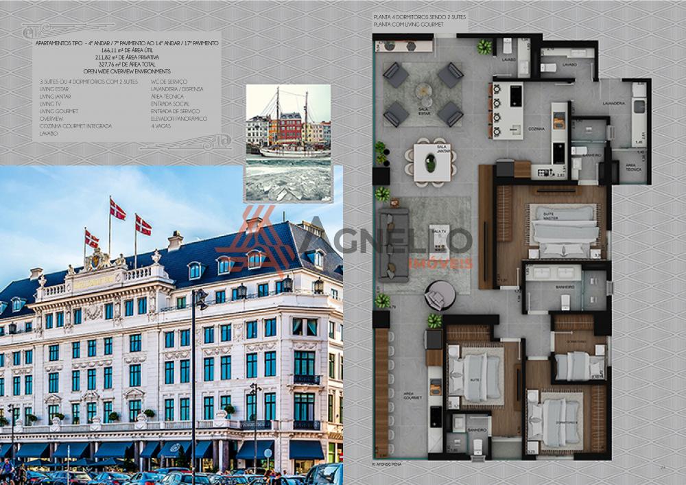 Amplo apartamento com 3 suítes ou 4 dormitórios com 2 suítes, living de estar, jantar e TV, cozinha gourmet integrada, lavabo, lavanderia, área gourmet, living externo possuindo deck com pergolado, piscina infinita e 4 vagas de garagem.