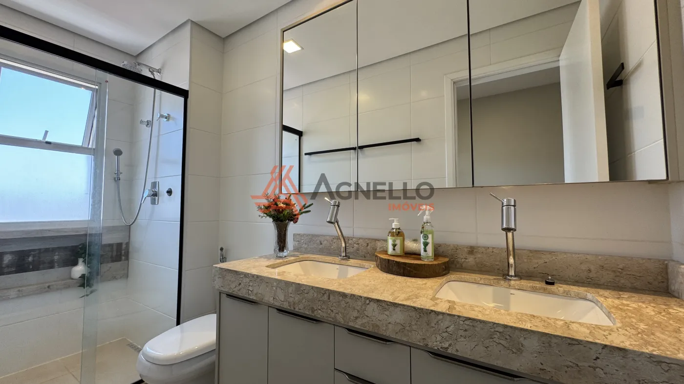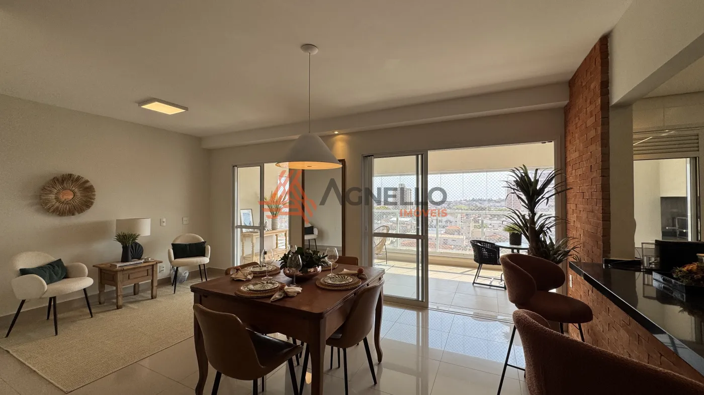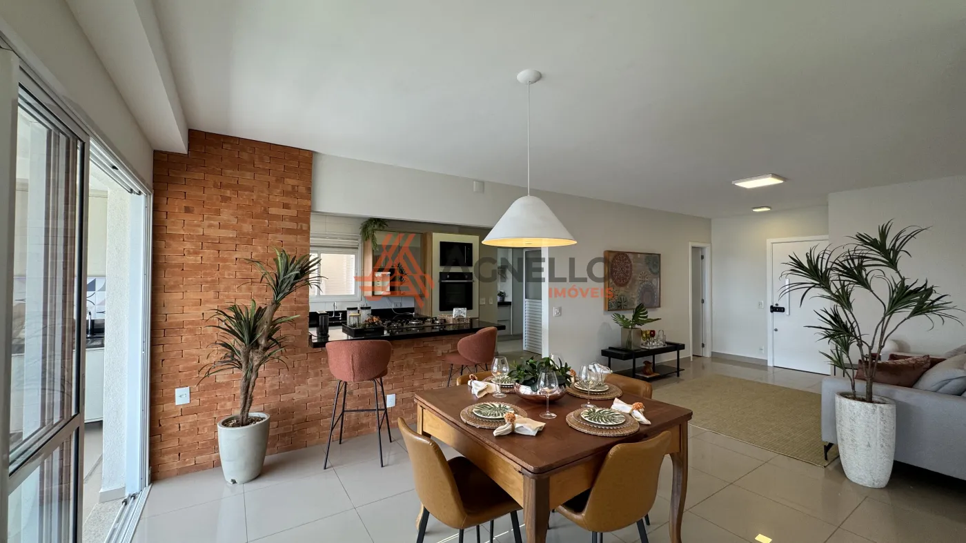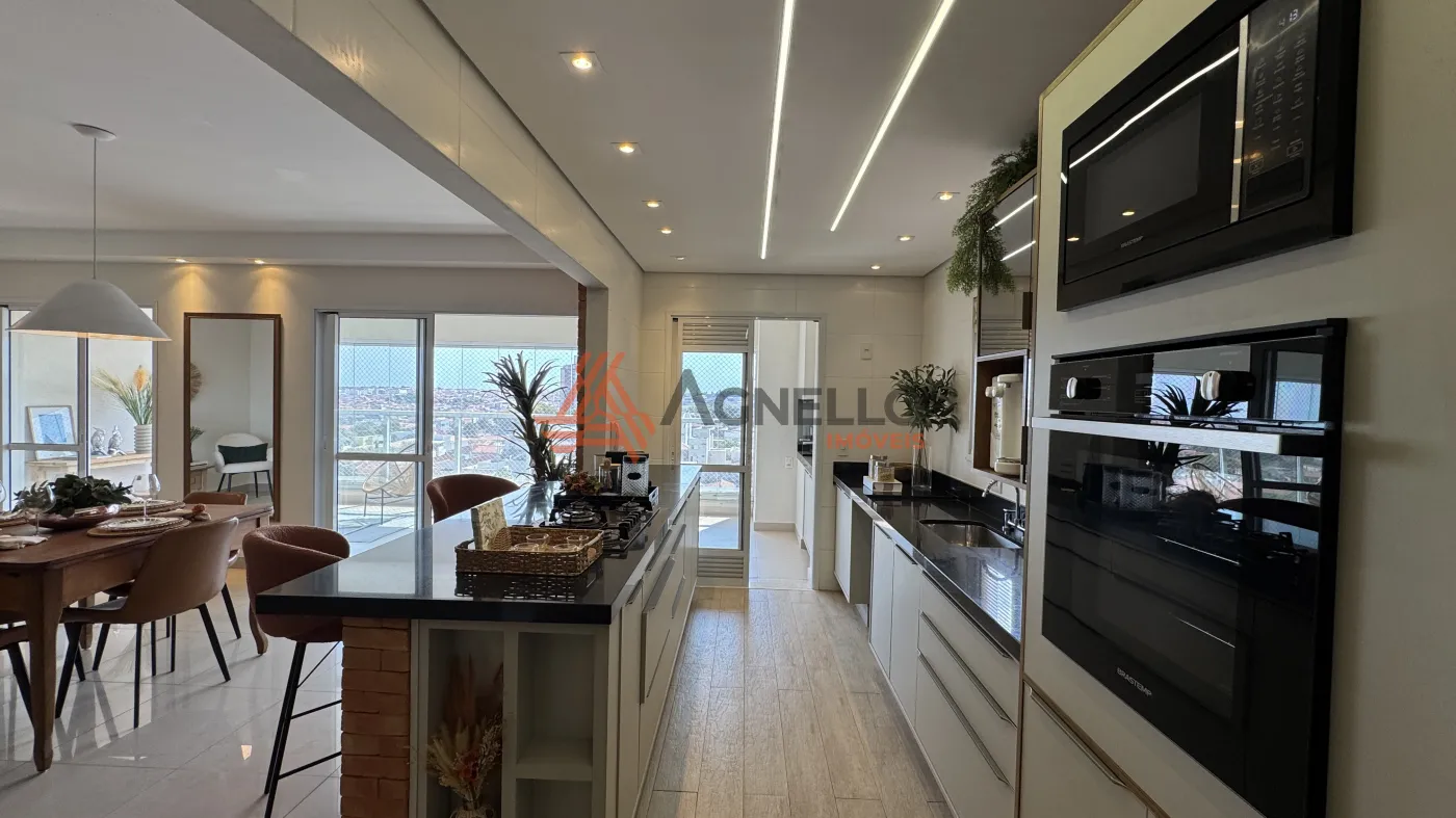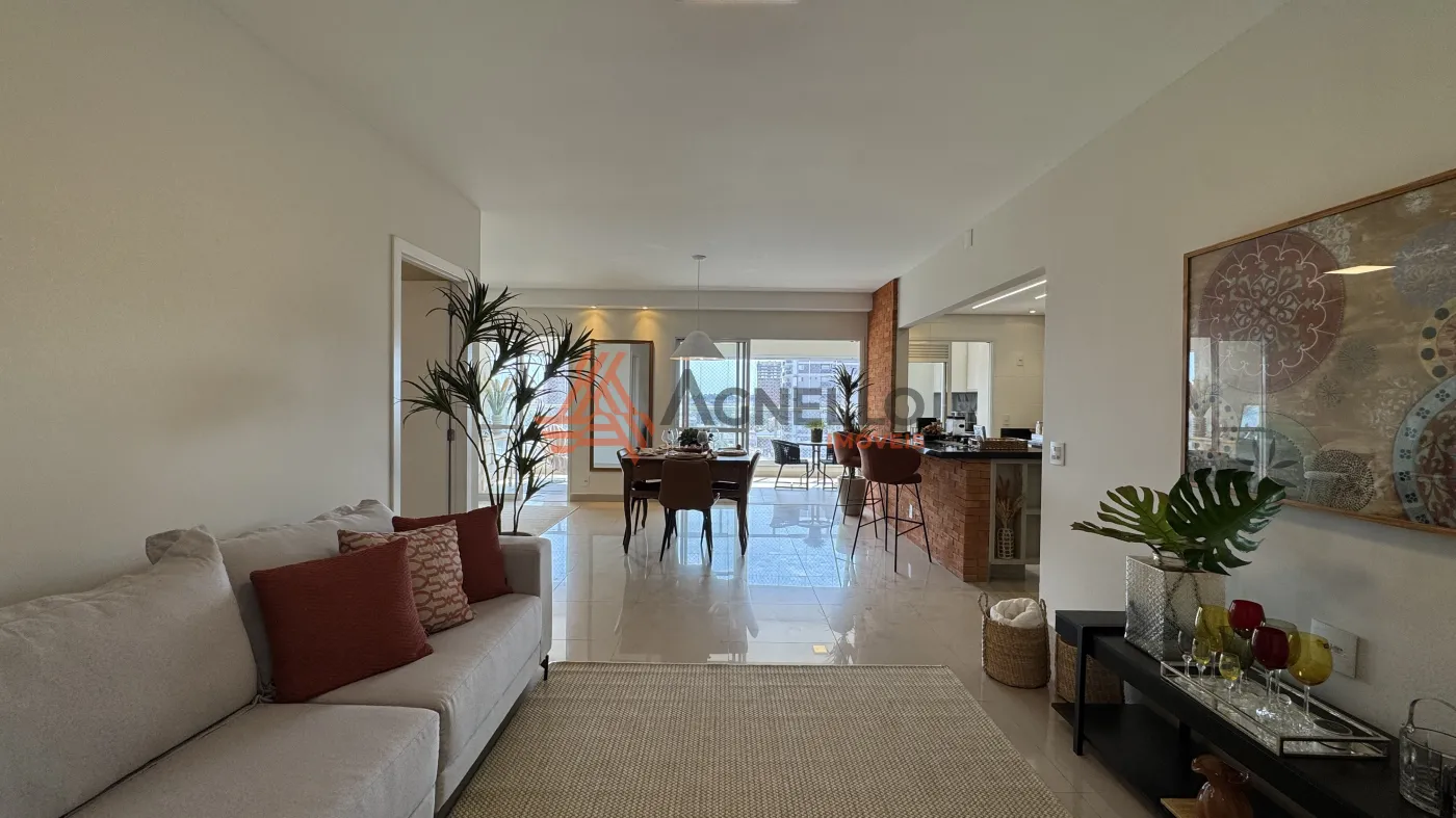 Apartamento com fino acabamento, possuindo 3 suítes, sendo 1 com varanda, sala em conceito aberto para 3 ambientes, lavabo, varanda gourmet com churrasqueira, cozinha americana com armários, forno e micro-ondas, área de serviço com banheiro, e 3 vagas de garagem cobertas.