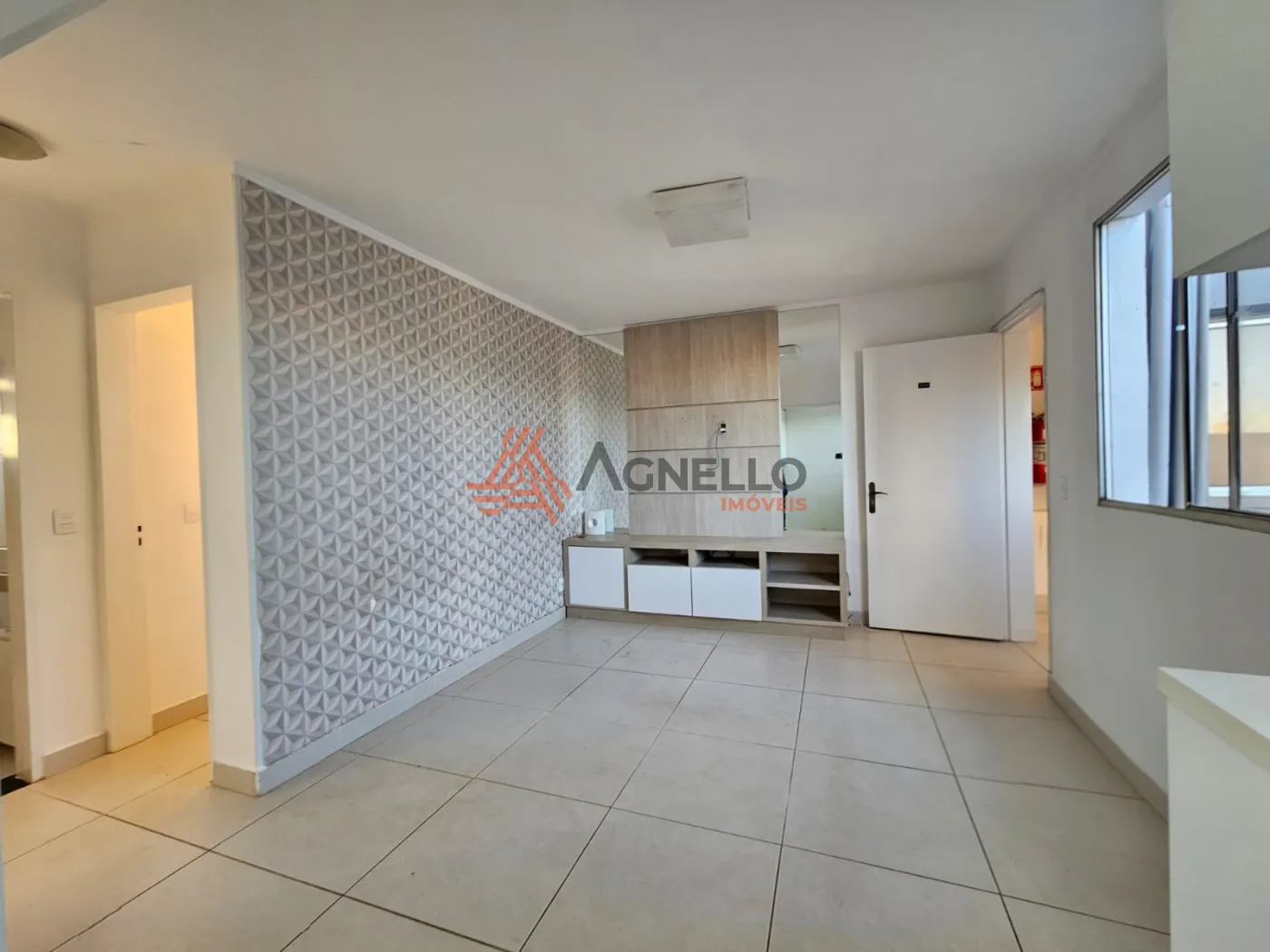 Apartamento com armários planejados em todos os cômodos, dois dormitórios, banheiro social, sala, cozinha com forno e fogão, lavanderia e uma vaga de garagem.