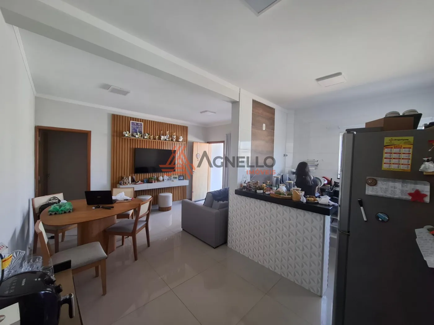 Apartamento térreo, com dois dormitórios sendo uma suíte, banheiro social, sala, cozinha, lavanderia e duas vagas de garagem.