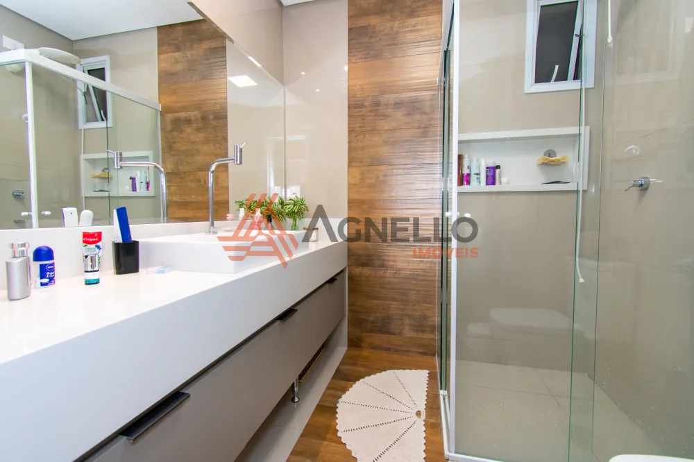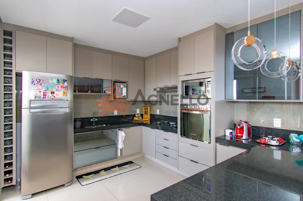 Salas de Estar, Jantar e TV conjugadas, cozinha integrada, banheiro social, três amplas Suítes, Varanda Gourmet, Lavabo, Sacada, três ótimas vagas de garagem predeterminadas ! Móveis planejados em todos ambientes.