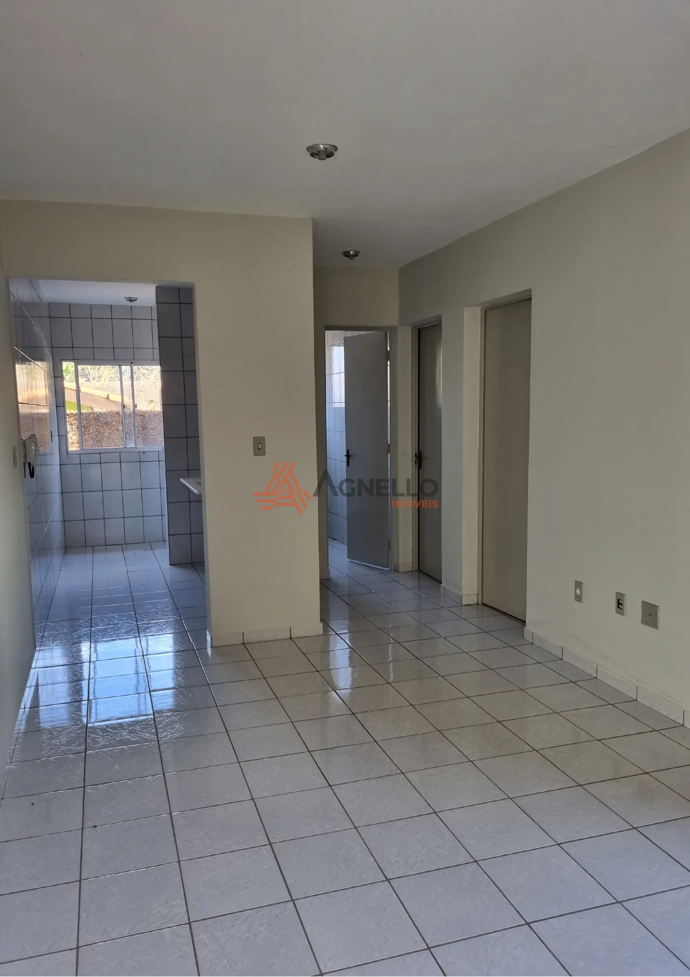 Apartamento com 2 dormitórios, sala com sacada, cozinha, lavanderia, banheiro e 1 vaga de garagem.