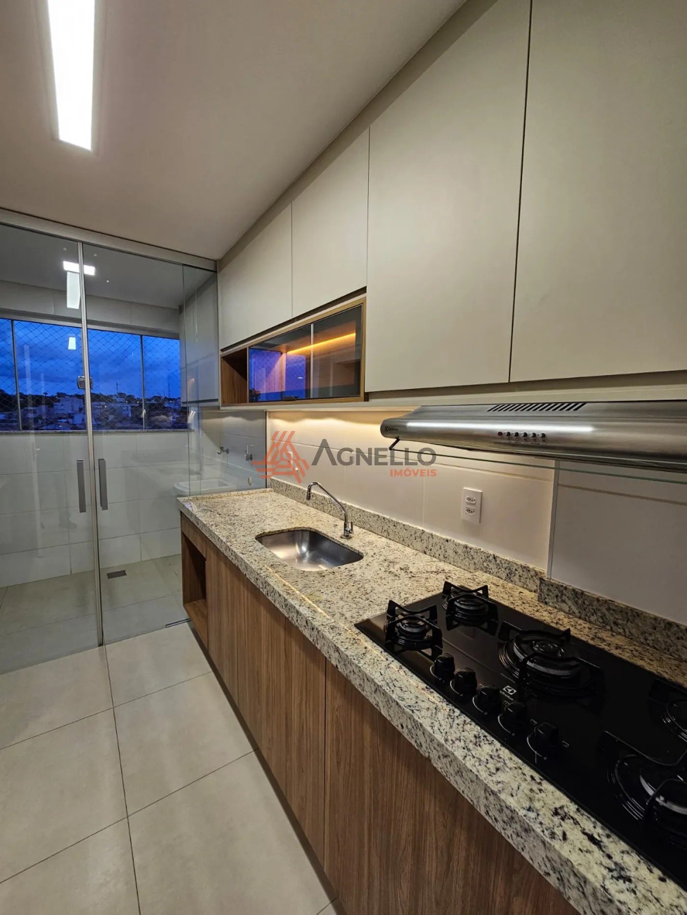Apartamento com fino acabamento e rico em móveis planejados, com três dormitórios sendo uma suíte, banheiro social, ampla sala, cozinha, lavanderia, despensa e duas vagas de garagem.