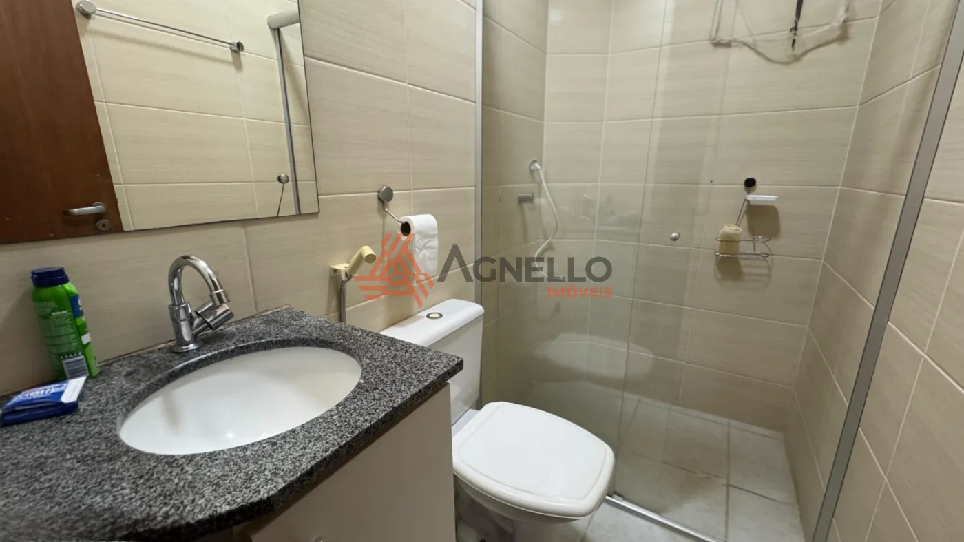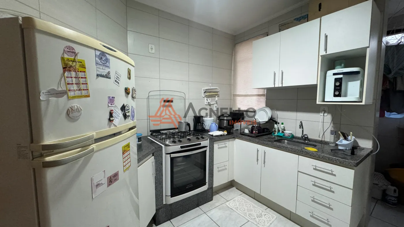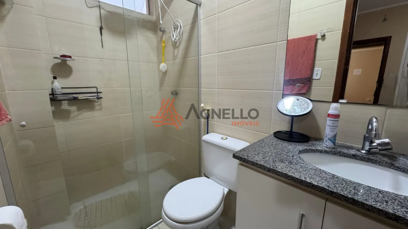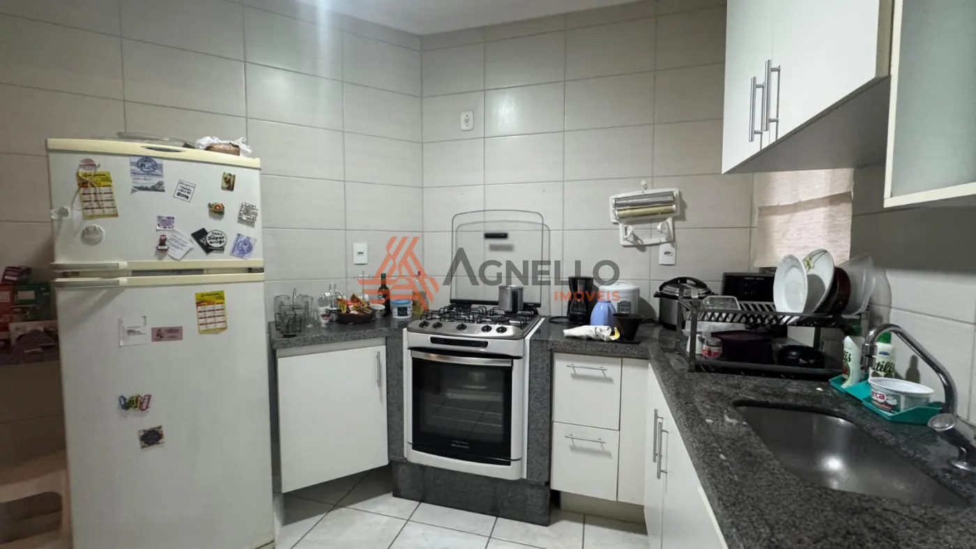 Com dois dormitórios com armários sendo uma suíte, sala de TV e jantar, cozinha, banheiro social, lavanderia e duas vagas de garagem.