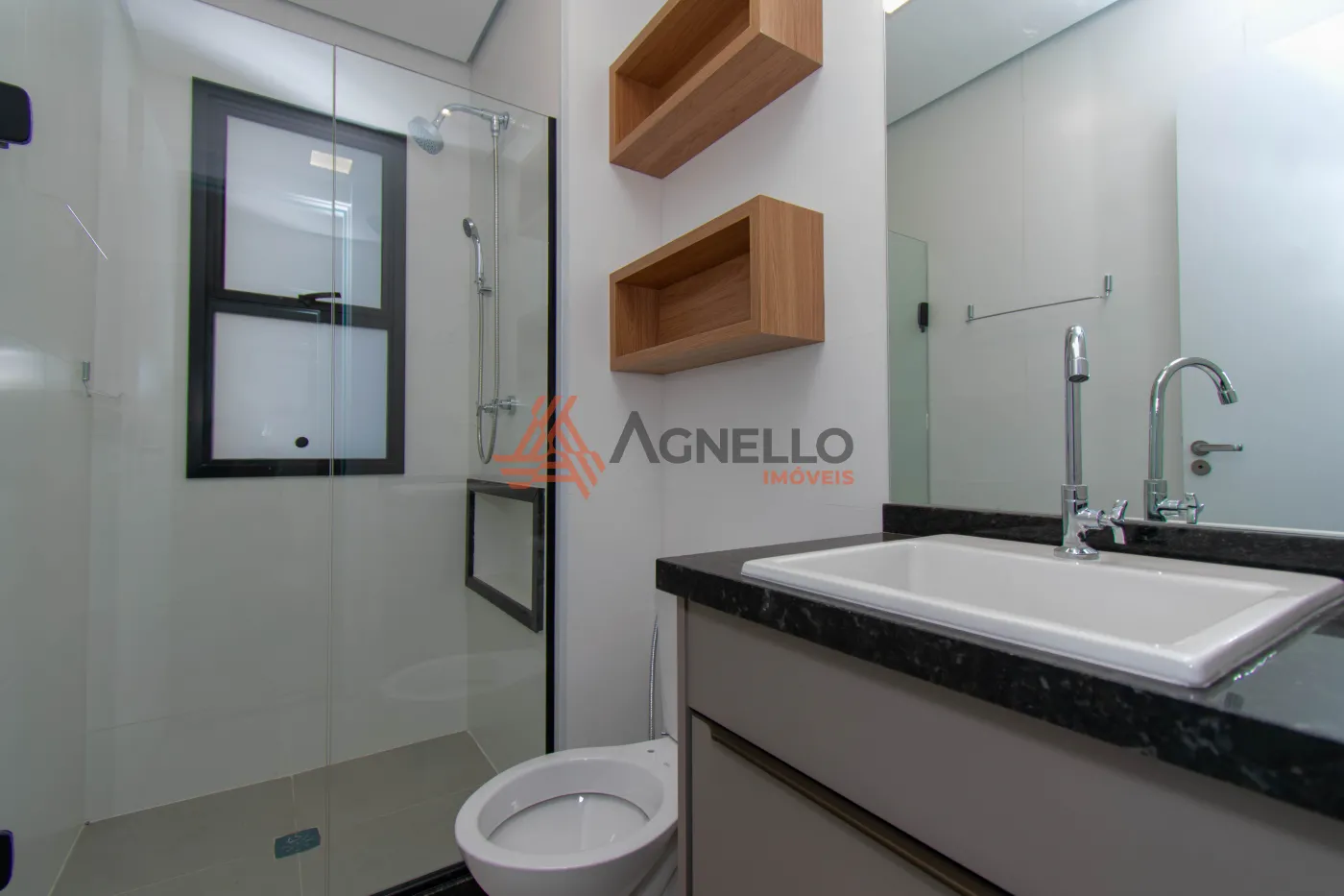Imóvel rico em móveis planejados, com três dormitórios sendo uma suíte, banheiro social, sala, sacada, cozinha, lavanderia e duas vagas de garagem.