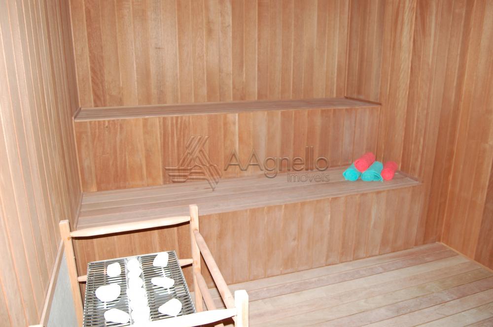 Edifício com uma piscina externa e uma coberta, sauna, academia, brinquedoteca, quadra poliesportiva e área gourmet.