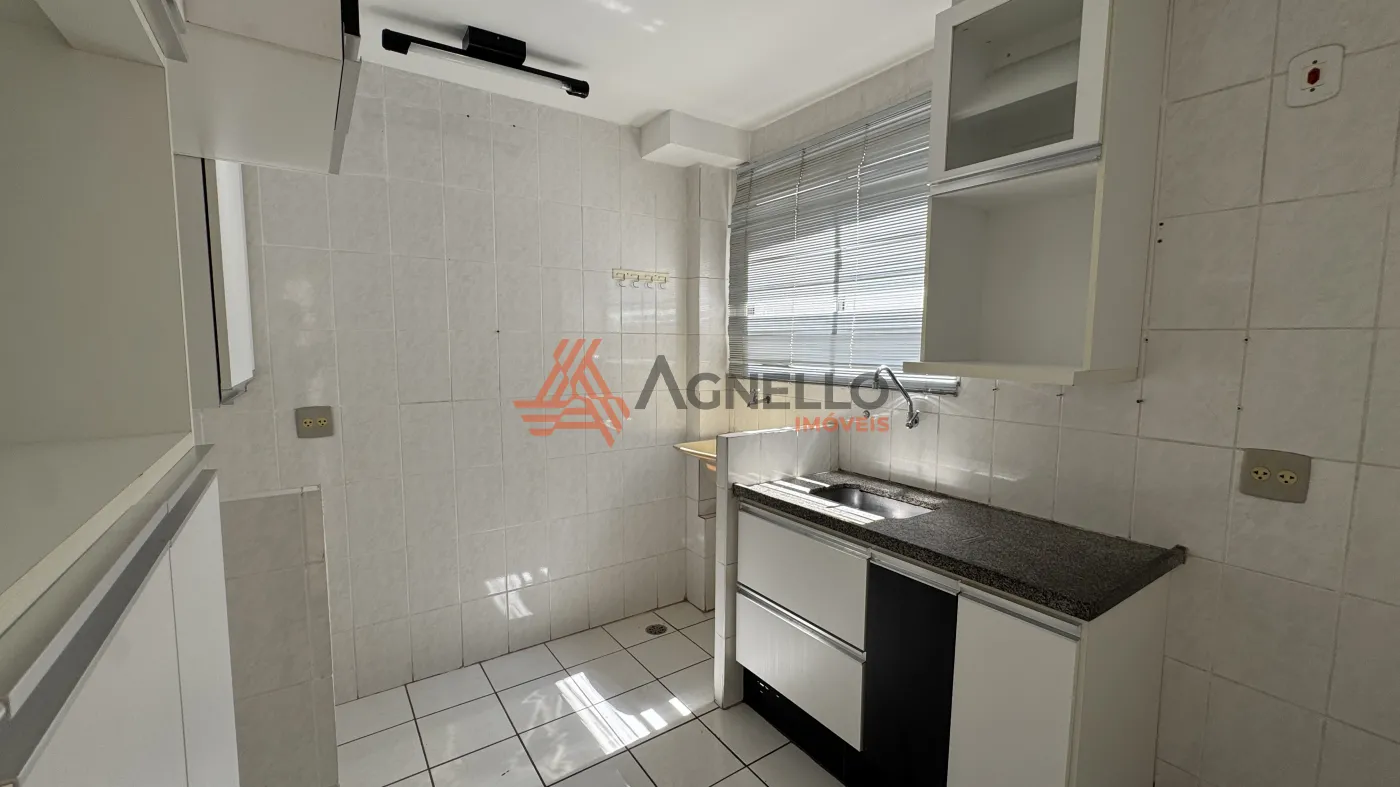 Imóvel com móveis planejados, dois dormitórios, banheiro social, sala, cozinha, lavanderia e uma vaga de garagem.