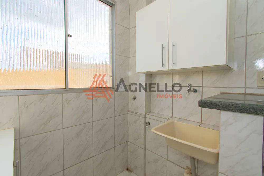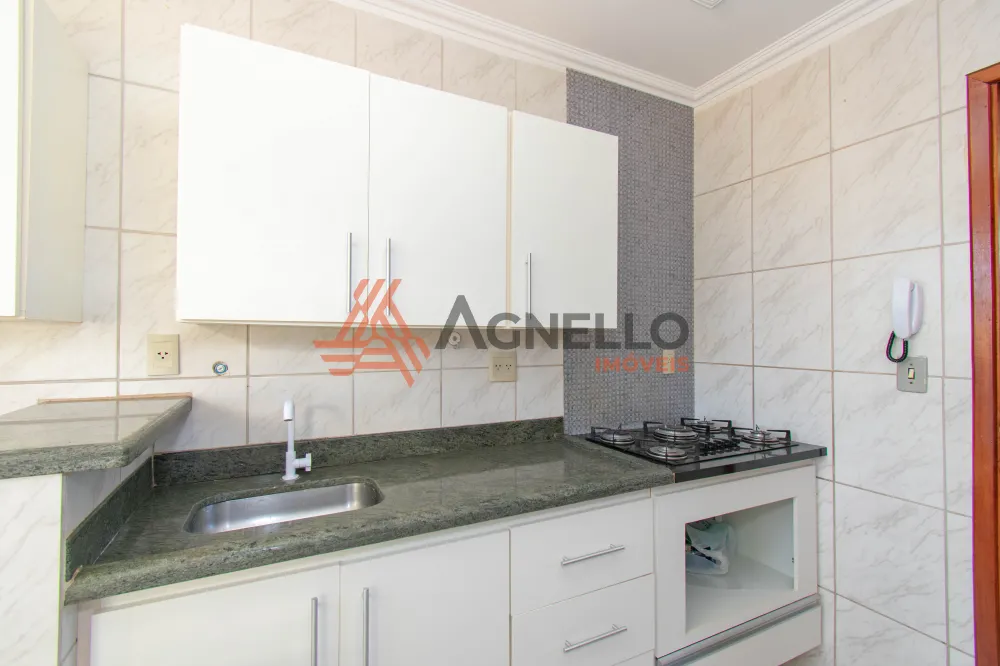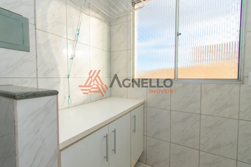 Apartamento com três dormitórios, sendo uma suíte, sala de estar, banheiro social, cozinha com armários e cooktop, lavanderia e uma vaga na garagem.