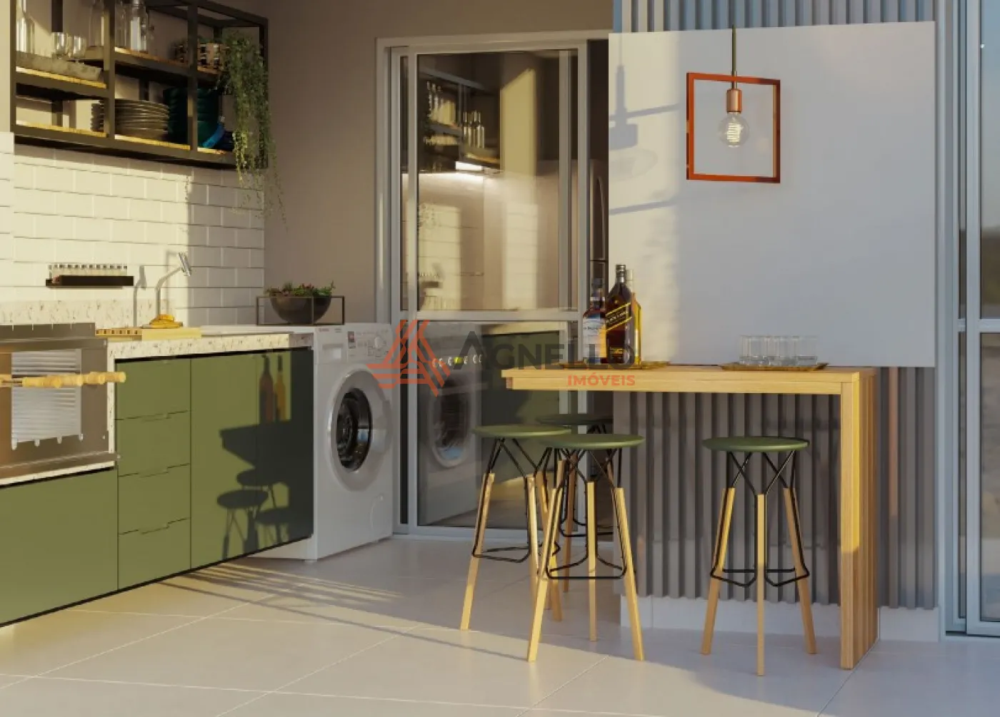 Com dois dormitórios sendo uma suíte, banheiro social, sala, cozinha, lavanderia, varanda gourmet com churrasqueira e uma vaga de garagem. Ventilação natural nos 02 banheiros.