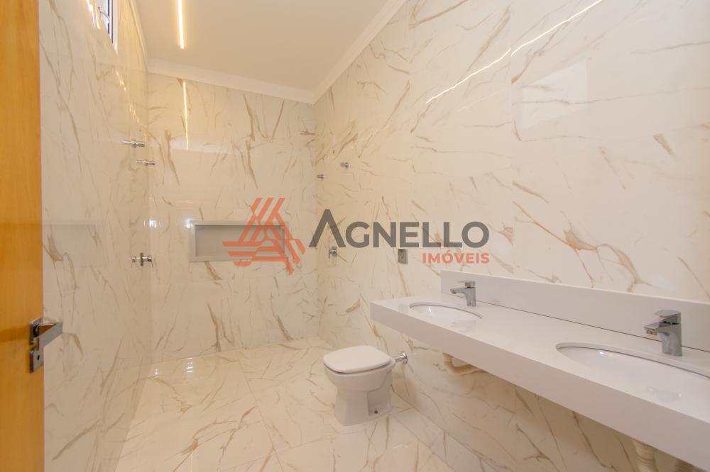 Casa nova, com belo acabamento, possui cômodos inteligentes para integração com dispositivos, torneiras com monocomando, 3 dormitórios, sendo 1 suíte com área de claridade, todos com infraestrutura para ar condicionado, sala, cozinha, área de serviço, espaço gourmet com churrasqueira, piscina aquecida, com hidro e com sistema de iluminação por controle remoto, portão eletrônico e 4 vagas de garagem.