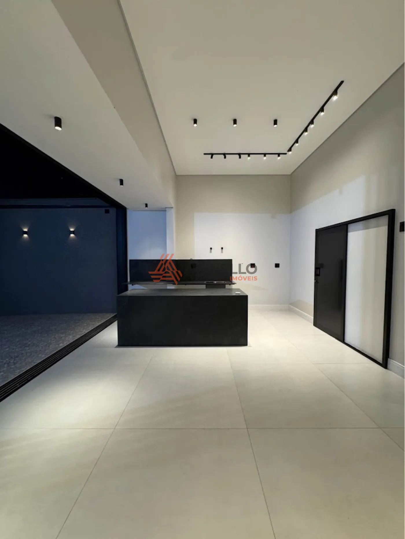 Imóvel de alto padrão, ótimo acabamento, pé direito alto, três dormitórios sendo uma suíte, salas de estar e TV, cozinha com ilha, jardim, piscina e garagem.