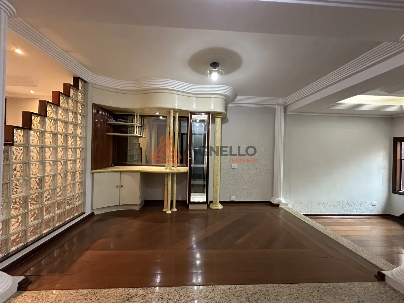 Residência com estética elegante e imponente, rica em armários, possuindo 3 dormitórios, sendo 1 suíte com banheira, banheiro social, sala de estar e TV, cozinha privativa, despensa, lavanderia, linda área gourmet com churrasqueira, bar e banheiro social, quintal e 2 vagas de garagem cobertas.