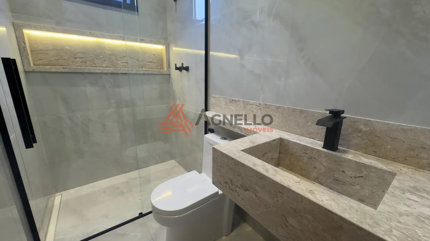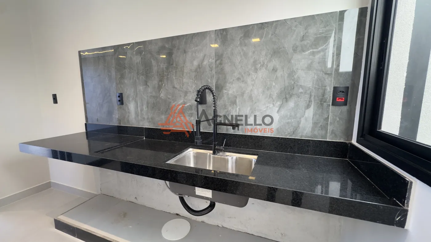 Imóvel novo, com ótimo acabamento. Três dormitórios sendo uma suíte, escritório, sala com pé-direito alto, jardim, cozinha com ilha, varanda gourmet com churrasqueira, lavabo e piscina com cascata. Lavanderia e garagem coberta.