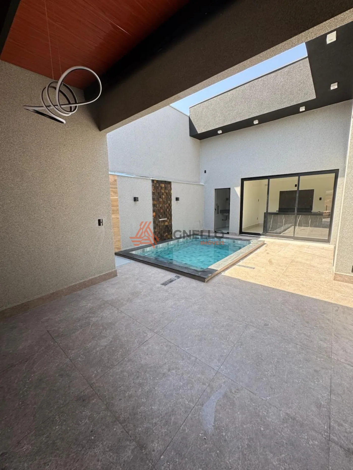 Imóvel com ótimo acabamento, três dormitórios sendo uma suíte com espaço para closet, sala, cozinha, varanda gourmet com lavabo, piscina, lavanderia e garagem coberta para 3 carros. Encanamento para água quente.