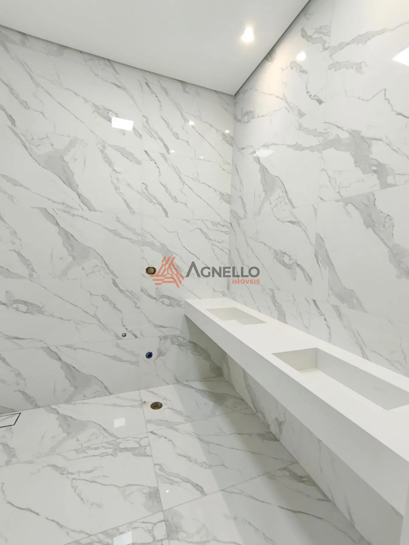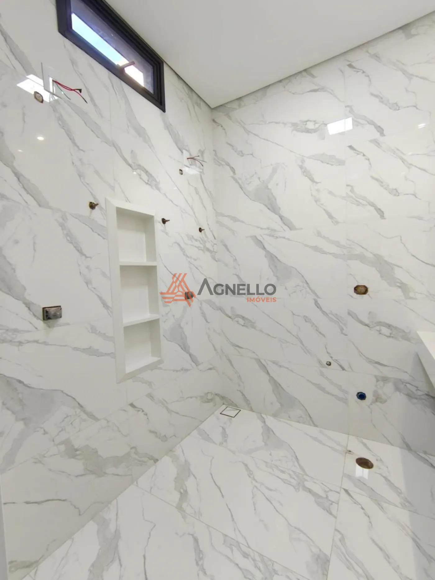Imóvel novo com excelente acabamento. Três dormitórios sendo uma suíte com closet, banheiro social. Sala e cozinha independentes, com pé direito alto. Área gourmet com lavabo, piscina aquecida com hidromassagem. Lavanderia e duas vagas de garagem. Pias esculpidas em porcelanato. Pontos de ar condicionado nos quartos.
