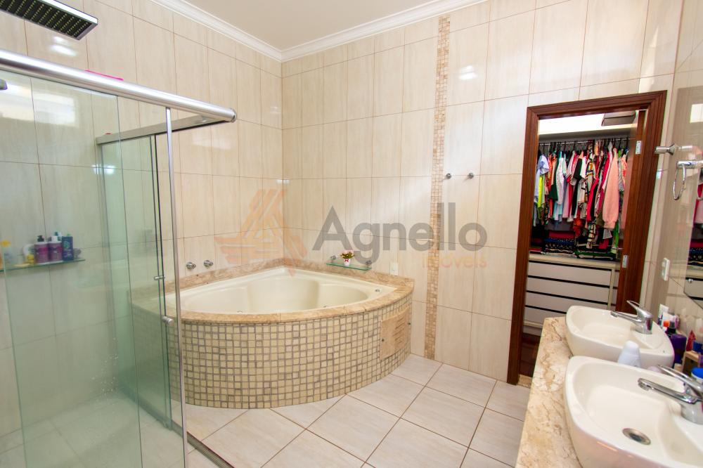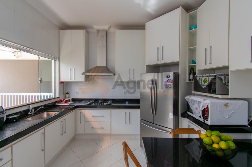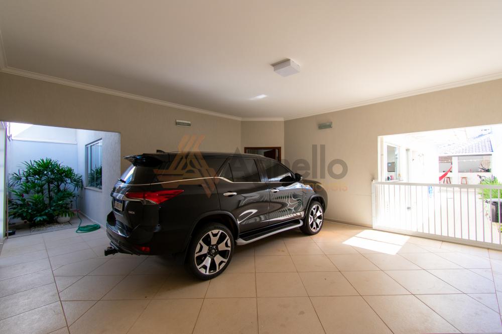 Com três dormitórios sendo uma suíte com closet, hidromassagem e cuba dupla, salas de estar, jantar e TV, cozinha ampla, lavabo, banheiro social e lavanderia. Jardim, área gourmet com piscina, churrasqueira e banheiro, garagem coberta para três carros.