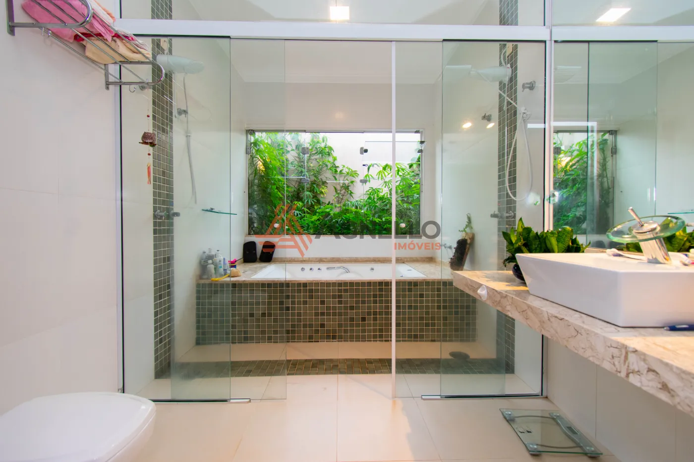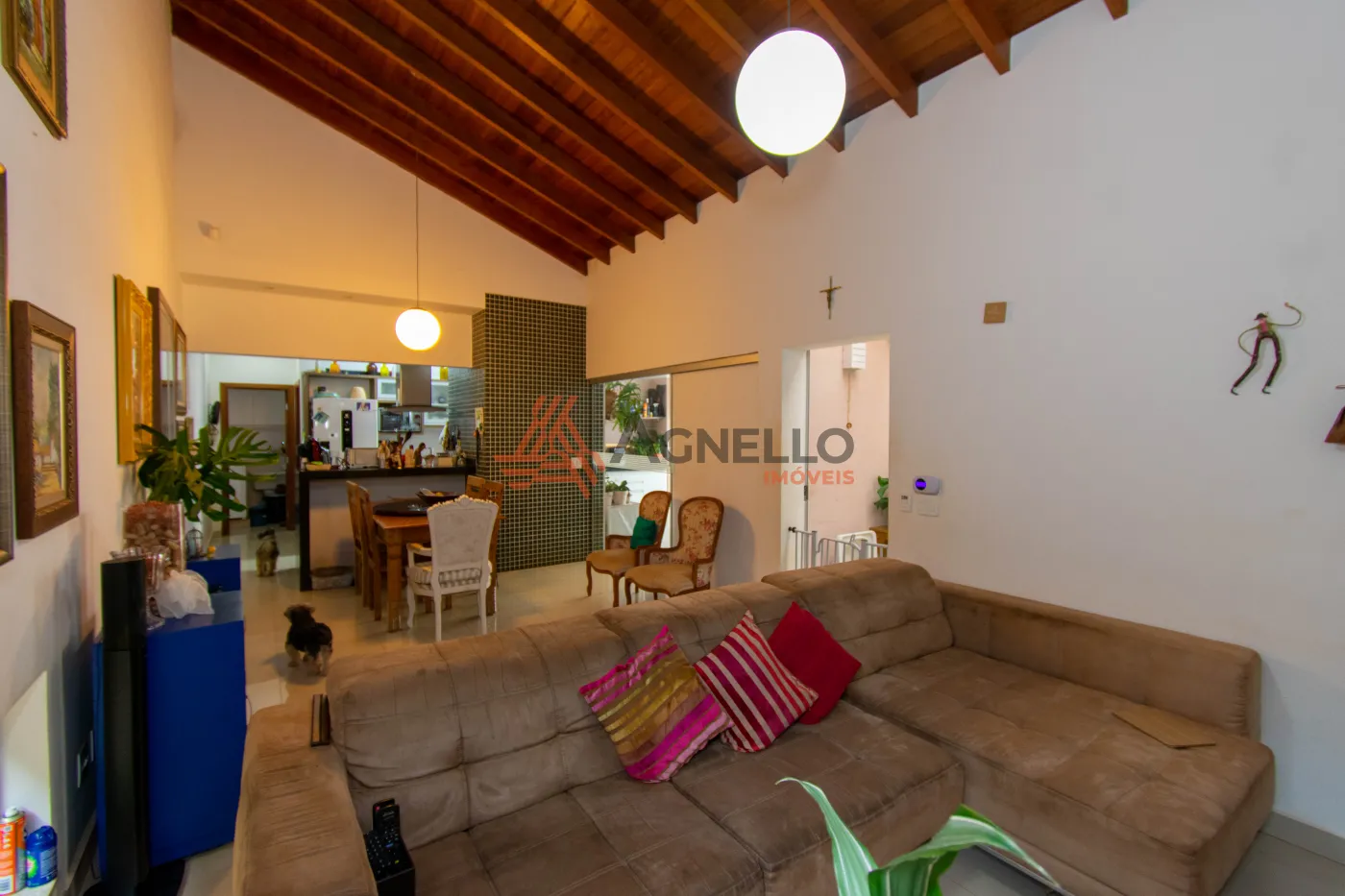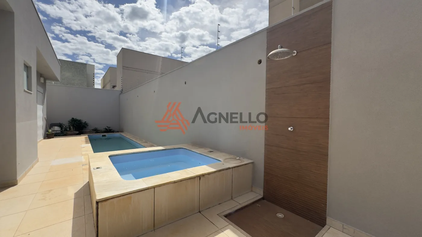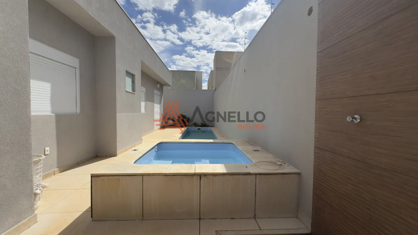 Residência com 3 dormitórios, sendo 1 suíte com closet e banheira, banheiro social, sala ampla para 2 ambientes, cozinha americana com armários, despensa, lavanderia, lavabo, espaço gourmet com churrasqueira, piscina com ofurô e e garagem para 3 carros. Possui aquecimento solar na casa e piscina.