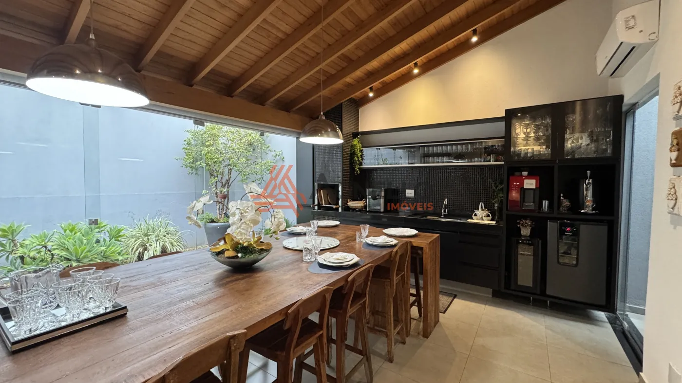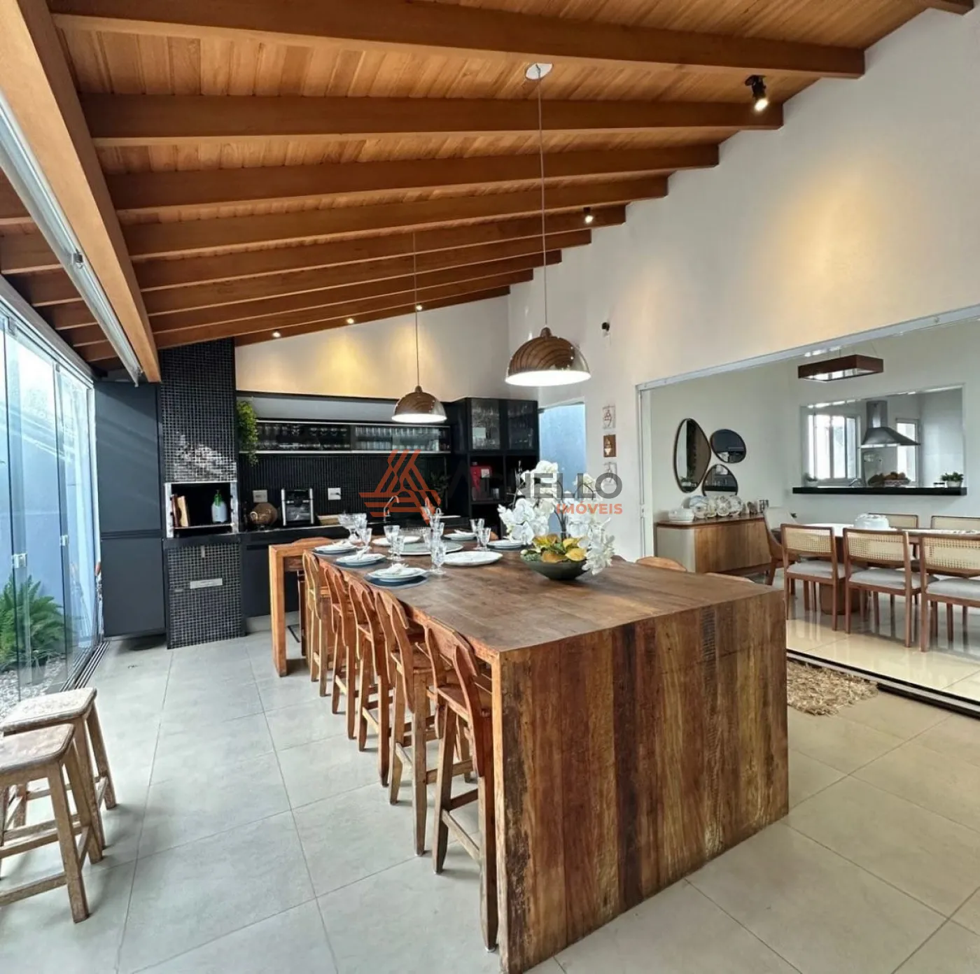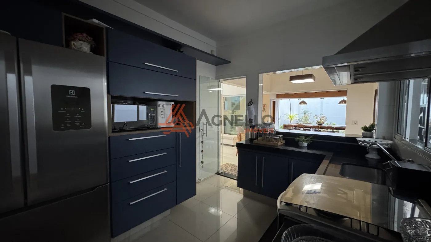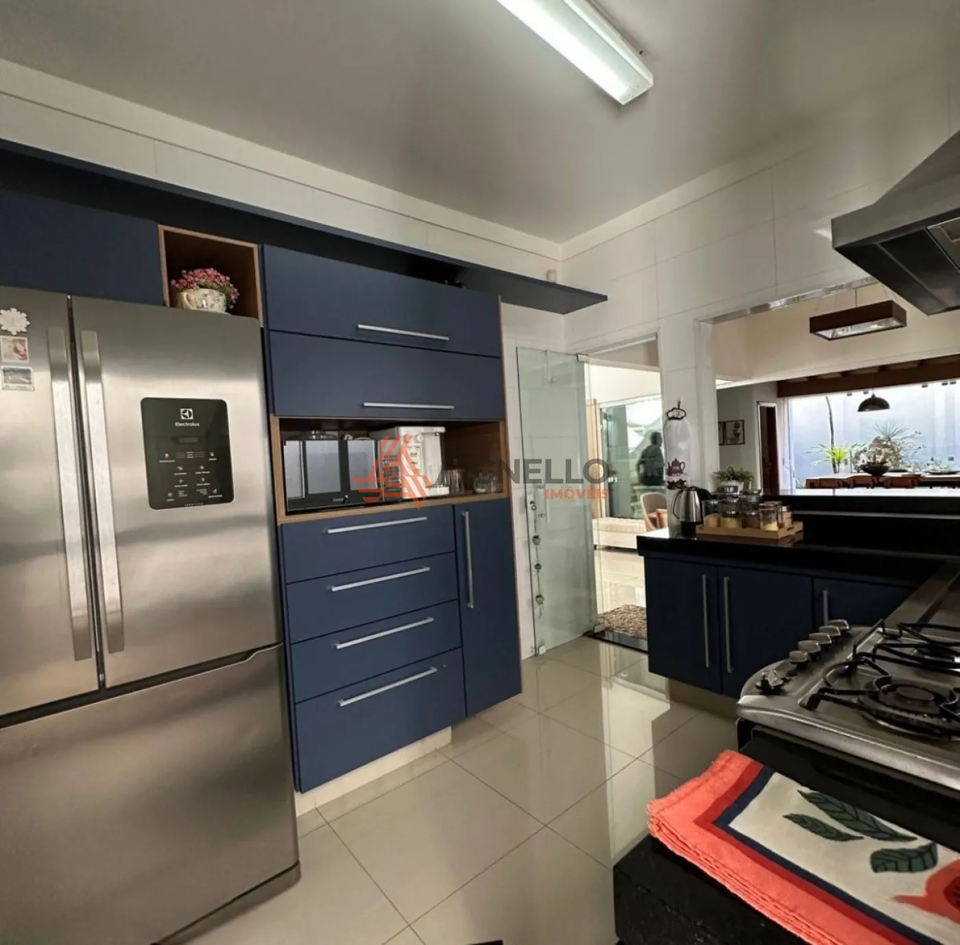 Lindo sobrado, com fino acabamento, possuindo 3 suítes, sala de jantar e TV, cozinha com armários, lavabo, amplo espaço gourmet com churrasqueira, jardim e 4 vagas de garagem, sendo 2 cobertas.