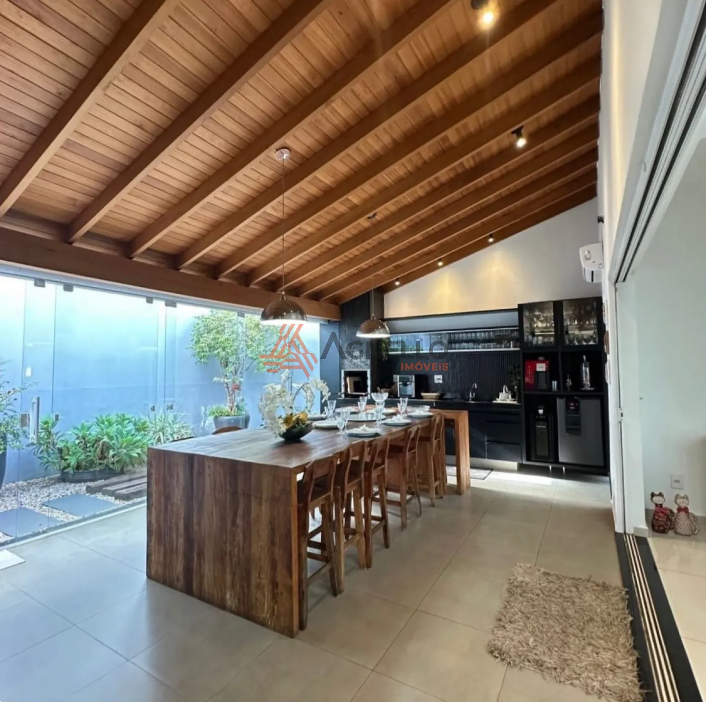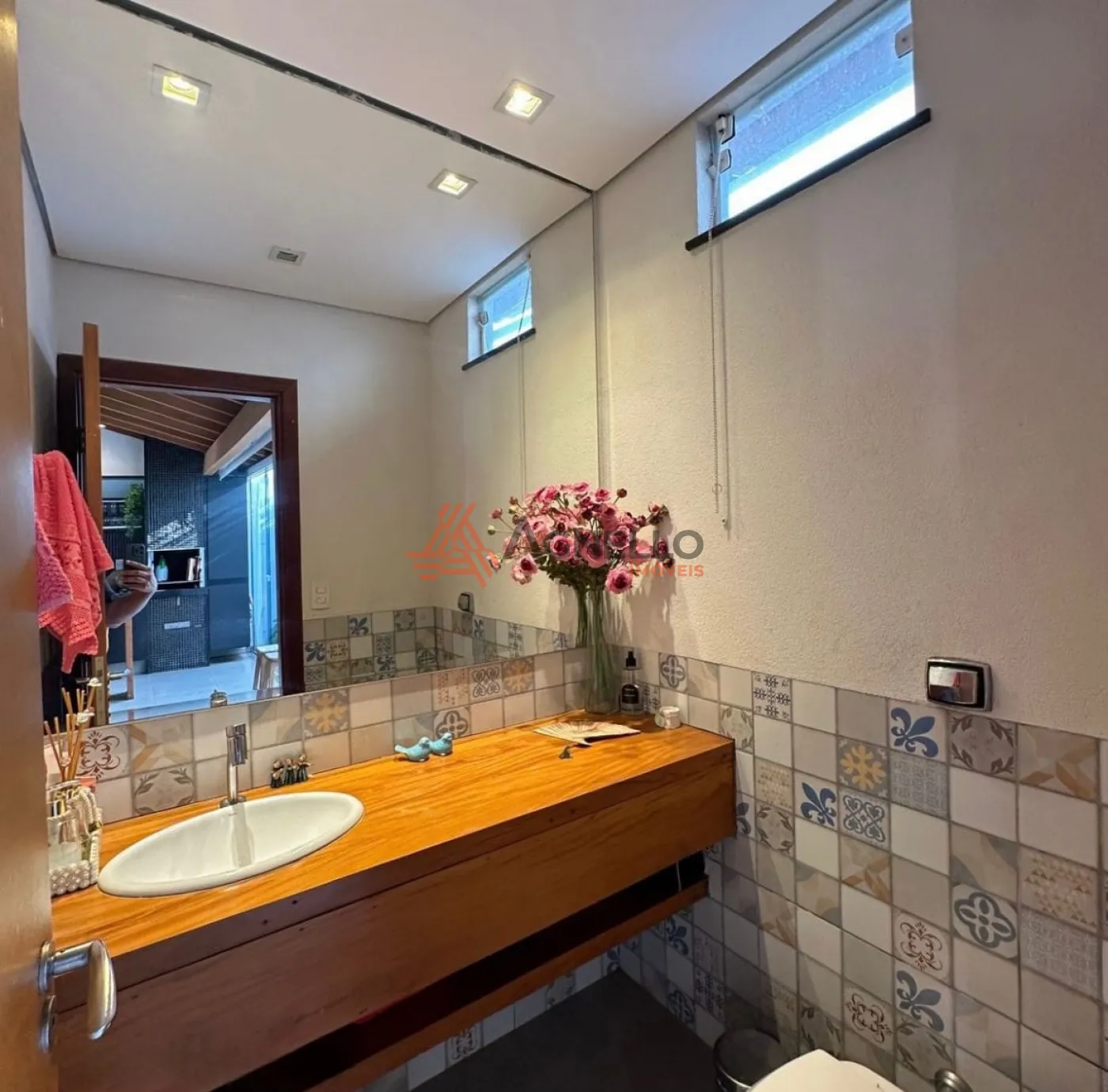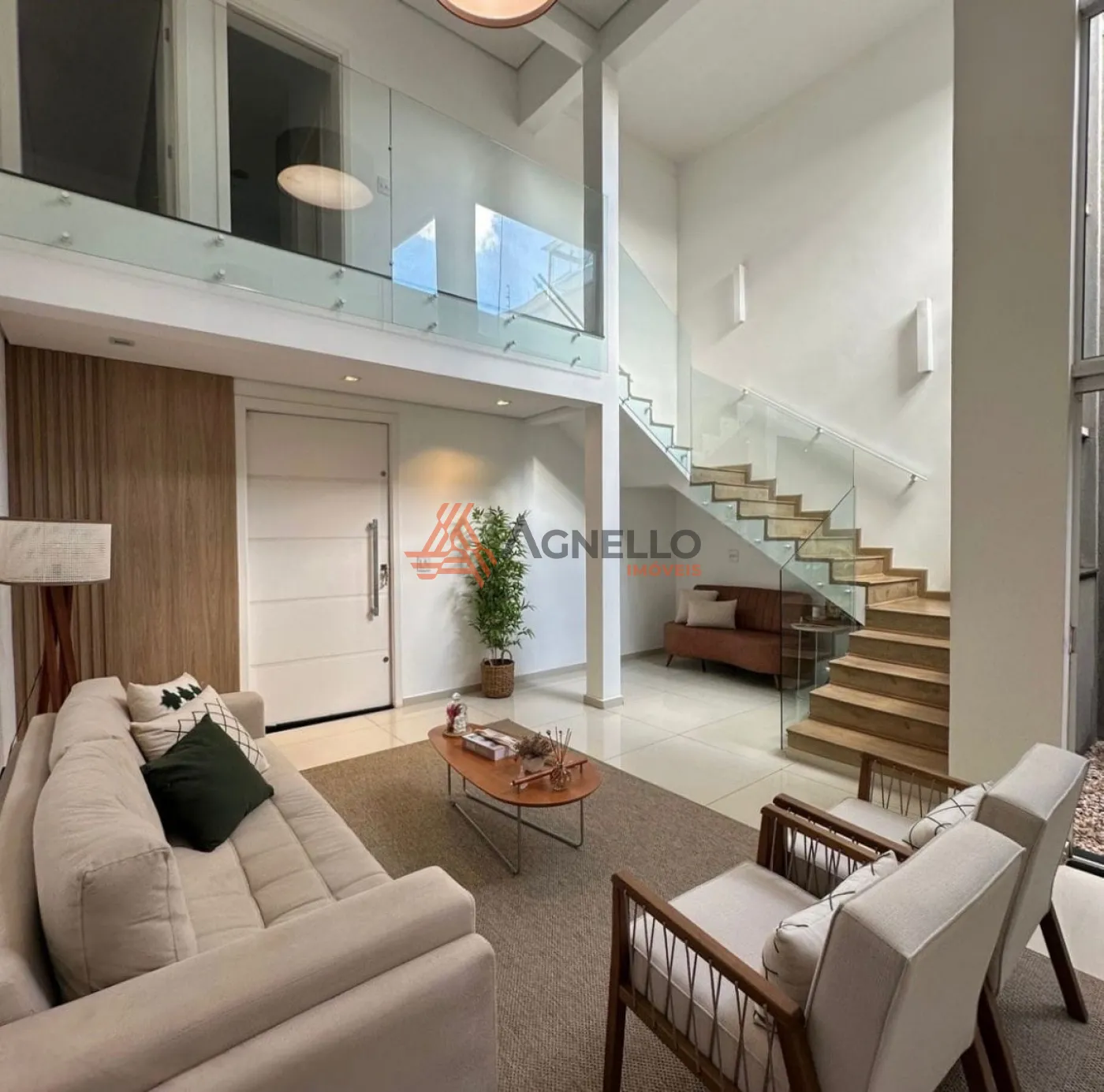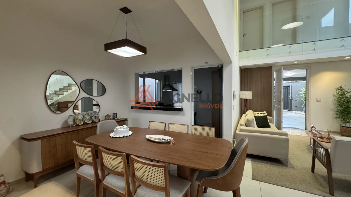 Lindo sobrado, com fino acabamento, possuindo 3 suítes, sala de jantar e TV, cozinha com armários, lavabo, amplo espaço gourmet com churrasqueira, jardim e 4 vagas de garagem, sendo 2 cobertas.