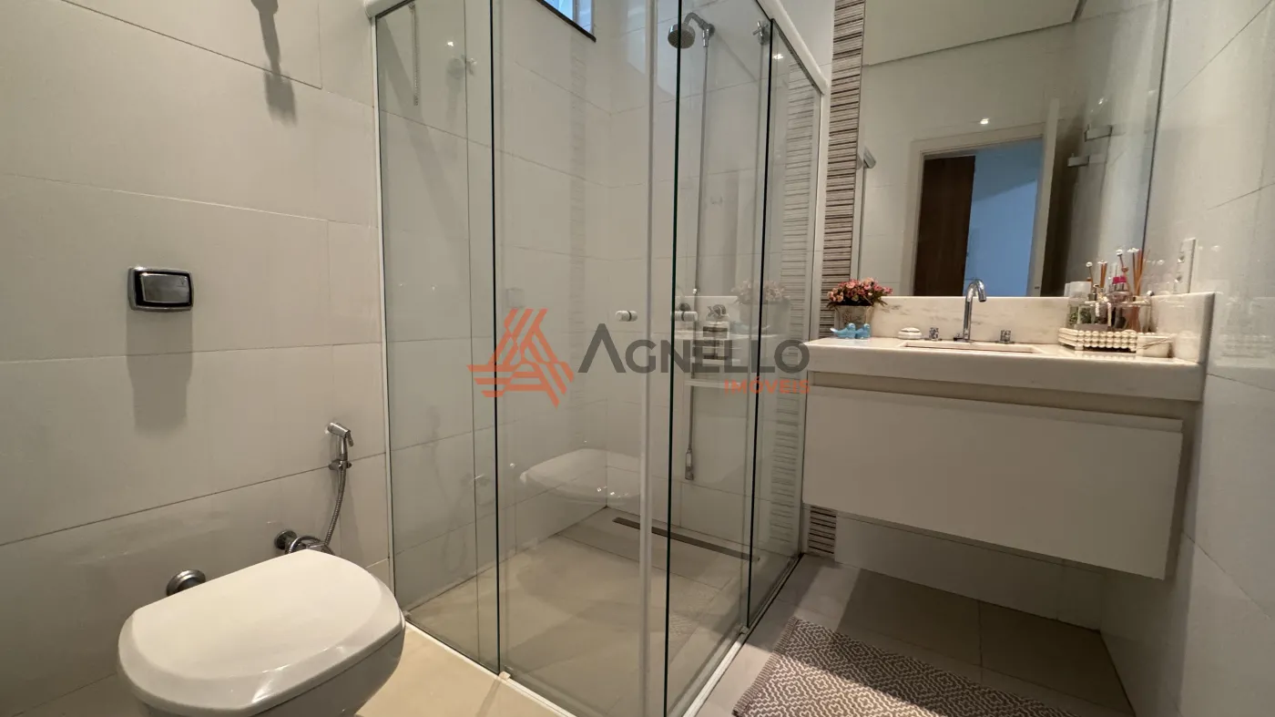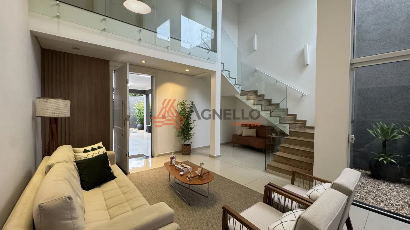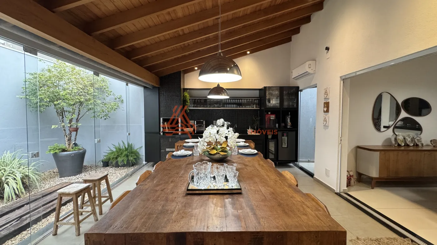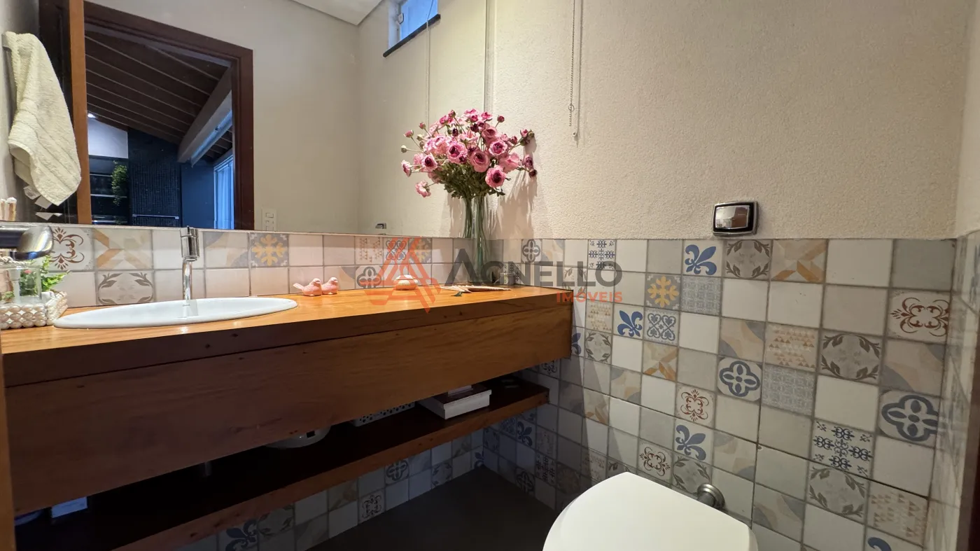 Lindo sobrado, com fino acabamento, possuindo 3 suítes, sala de jantar e TV, cozinha com armários, lavabo, amplo espaço gourmet com churrasqueira, jardim e 4 vagas de garagem, sendo 2 cobertas.