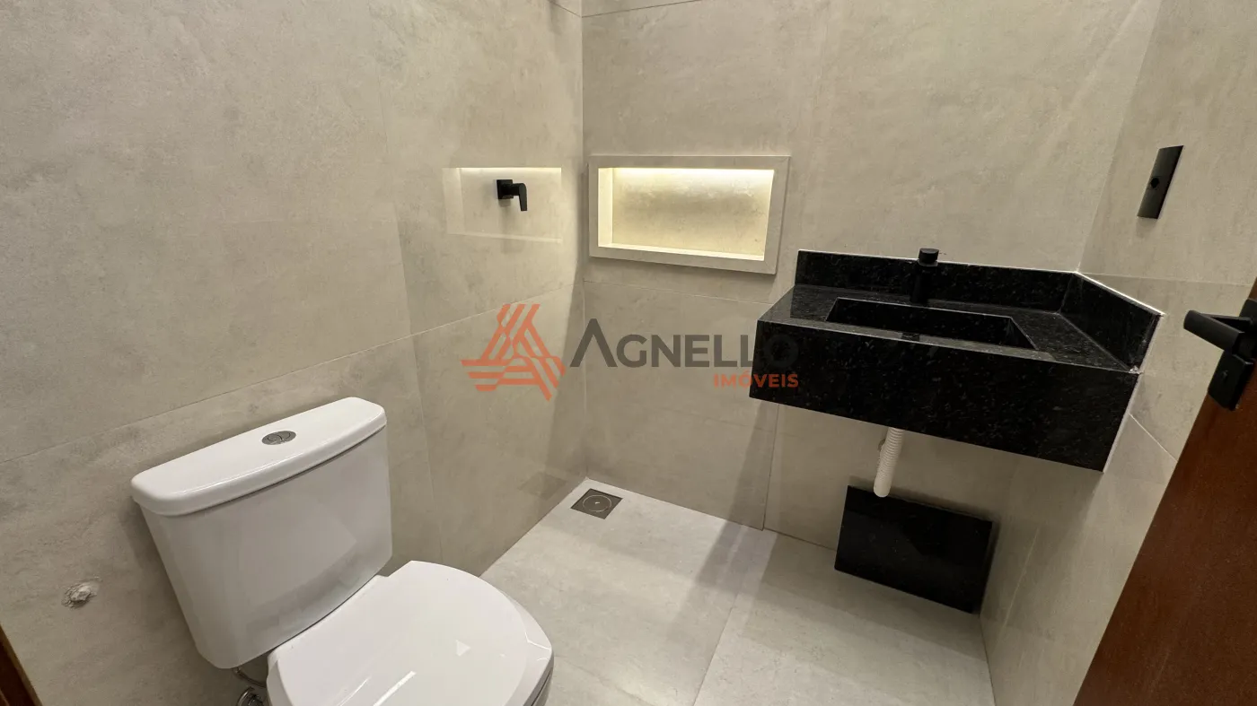 Casa nova, com acabamento moderno, possuindo 3 dormitórios, sendo 1 suíte com varanda privativa, banheiro social, sala de TV, cozinha americana com ilha, lavanderia com área de claridade, espaço gourmet com churrasqueira e 2 vagas de garagem cobertas.