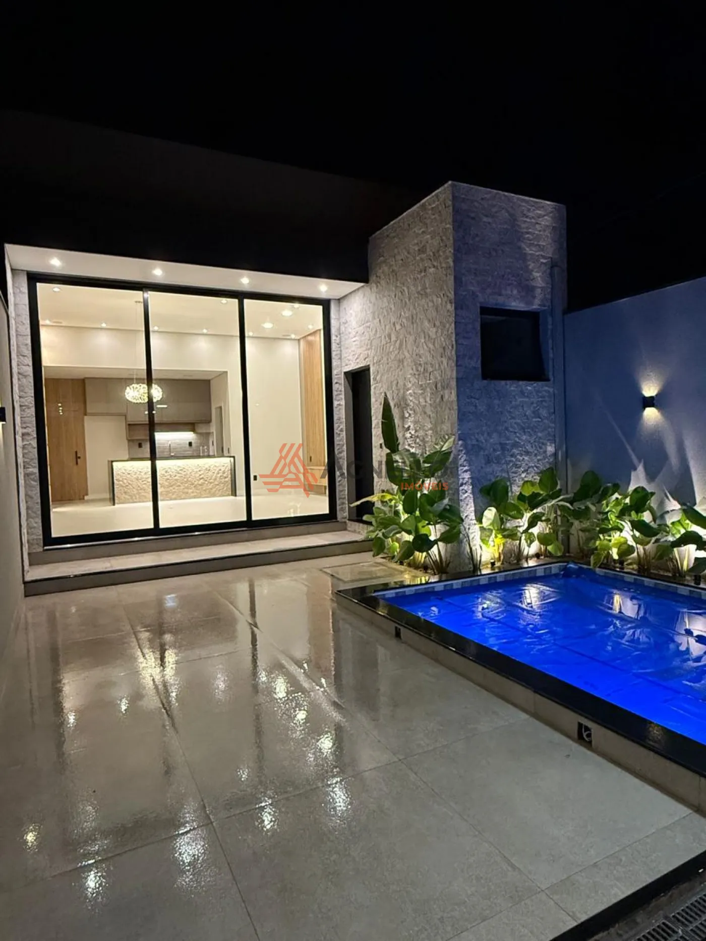Imóvel novo, com excelente acabamento, três dormitórios sendo uma suíte, banheiro social, sala, cozinha com armários, piscina e duas vagas de garagem.