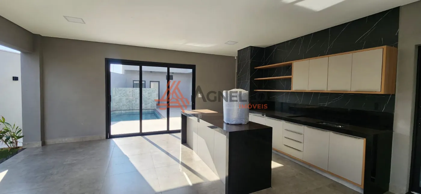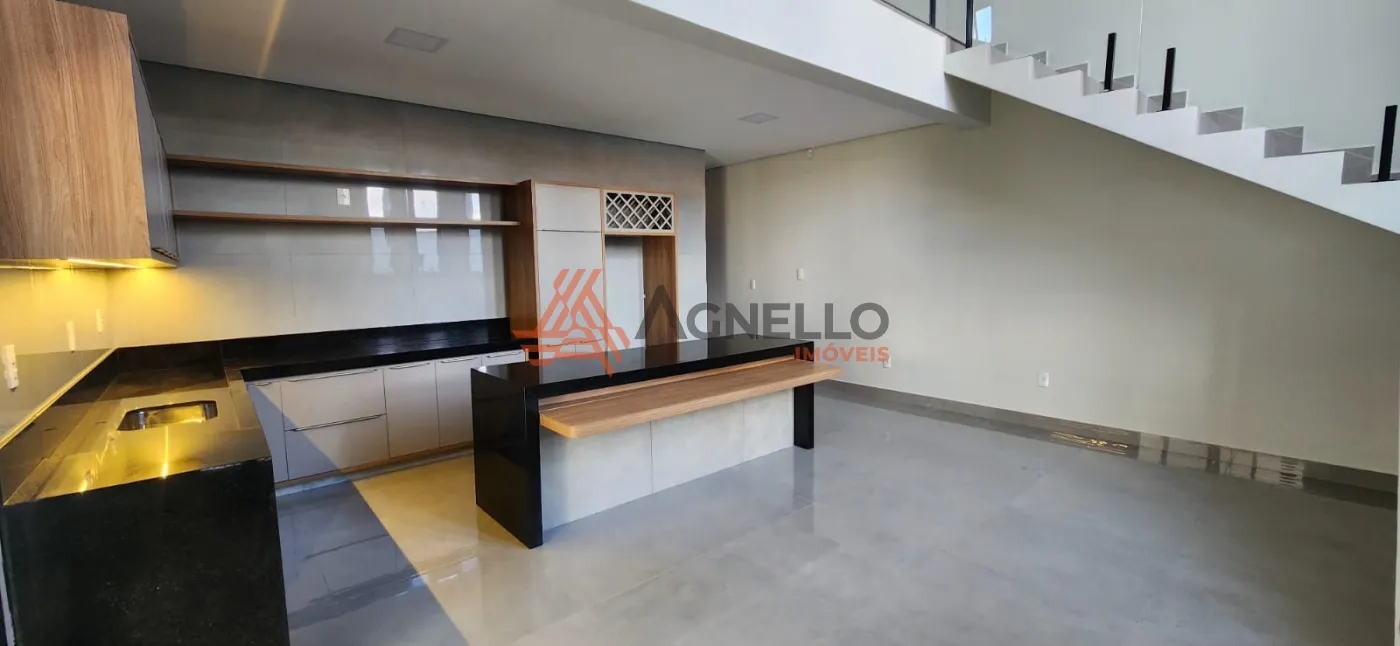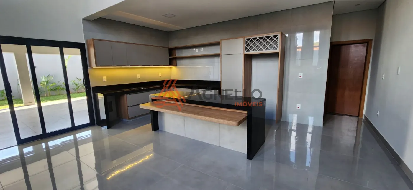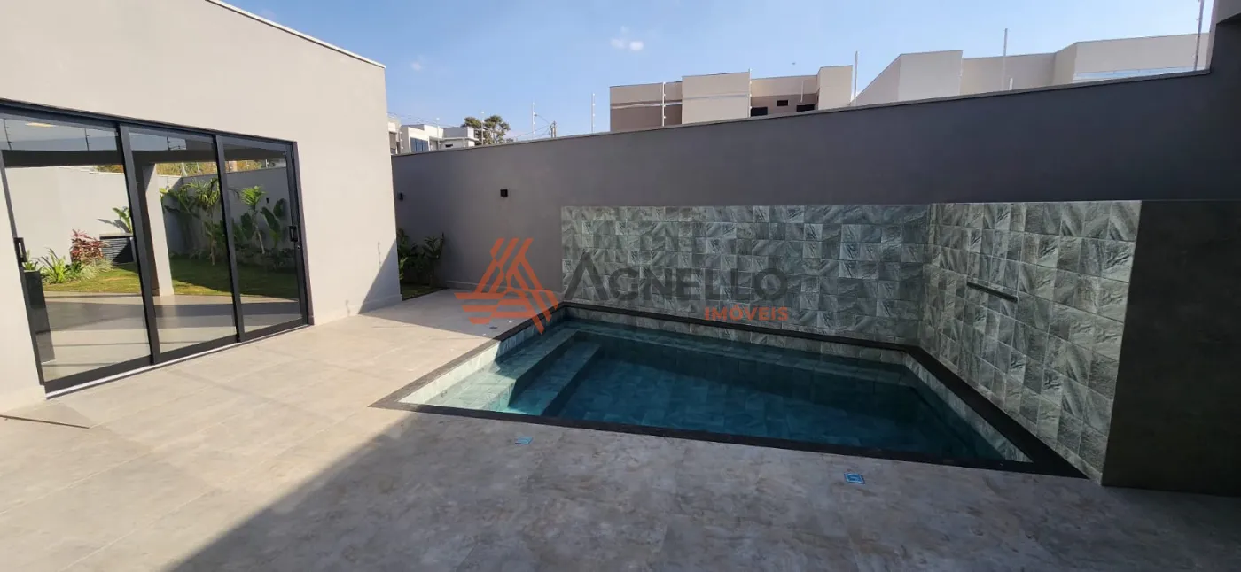 Imóvel novo, com fino acabamento, três dormitórios sendo duas suítes, salas de estar e jantar integrada com cozinha, mezanino para sala ou escritório, ampla varanda gourmet, piscina e jardim. Lavanderia, despensa e garagem para três carros.