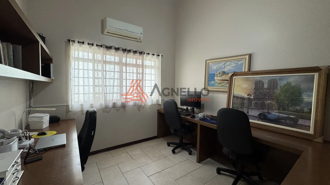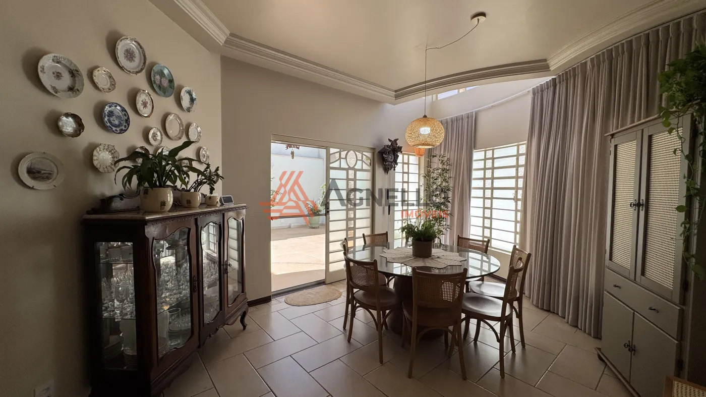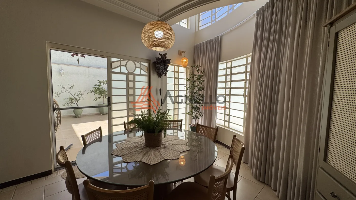 Excelente imóvel com três suítes sendo uma com closet, escritório, sala de estar e TV, lavabo, sala de jantar, cozinha, despensa, área de serviço com banheiro, quintal e garagem coberta para três carros.