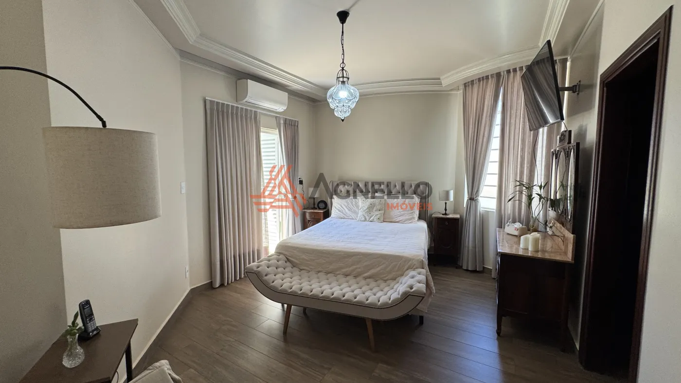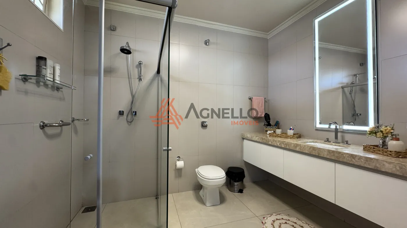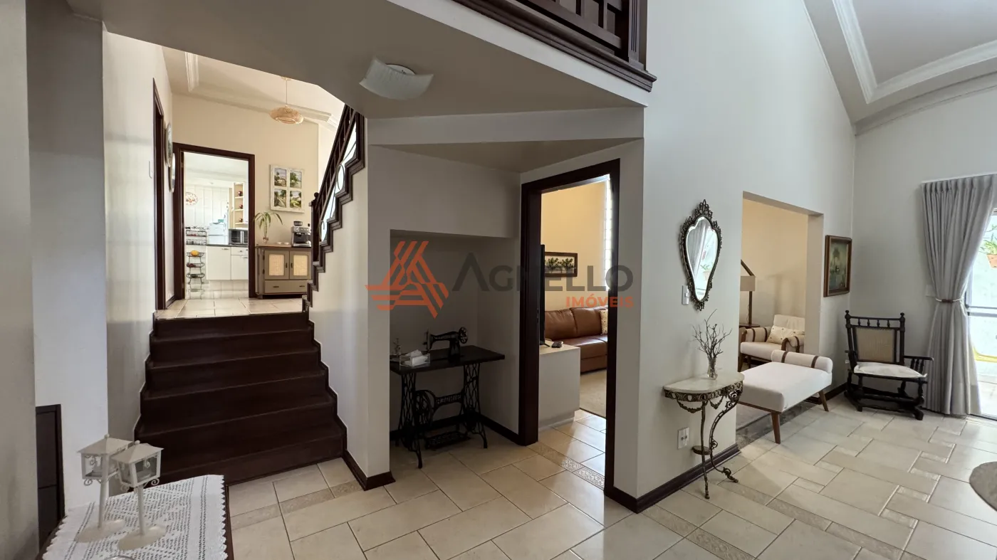 Excelente imóvel com três suítes sendo uma com closet, escritório, sala de estar e TV, lavabo, sala de jantar, cozinha, despensa, área de serviço com banheiro, quintal e garagem coberta para três carros.
