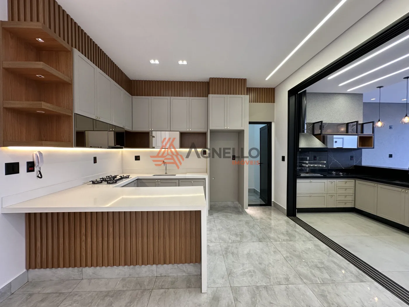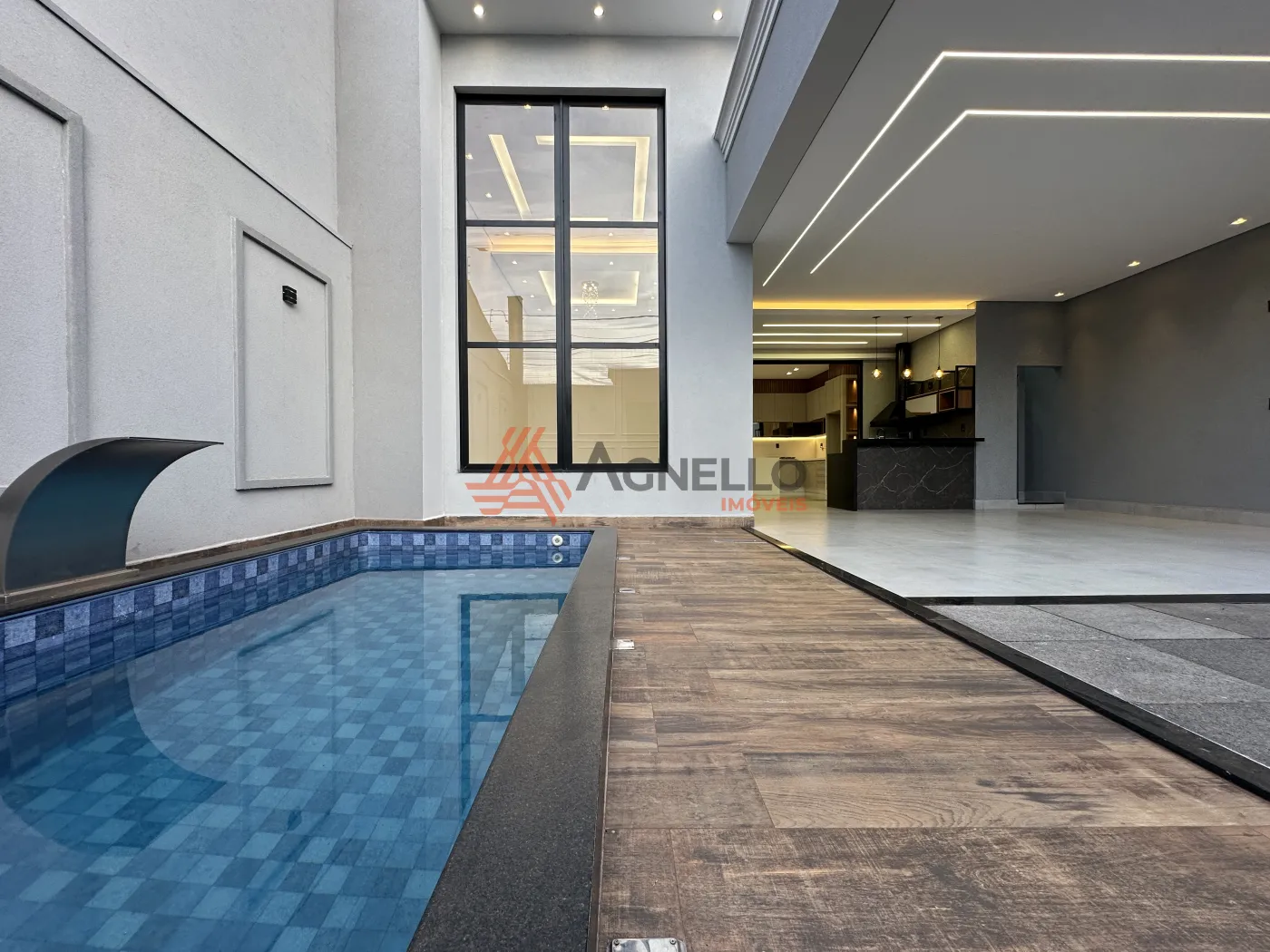 Imóvel com fino acabamento, rico em móveis planejados, três suítes, salas de jantar e TV, cozinha, varanda gourmet com lavabo, piscina e garagem.