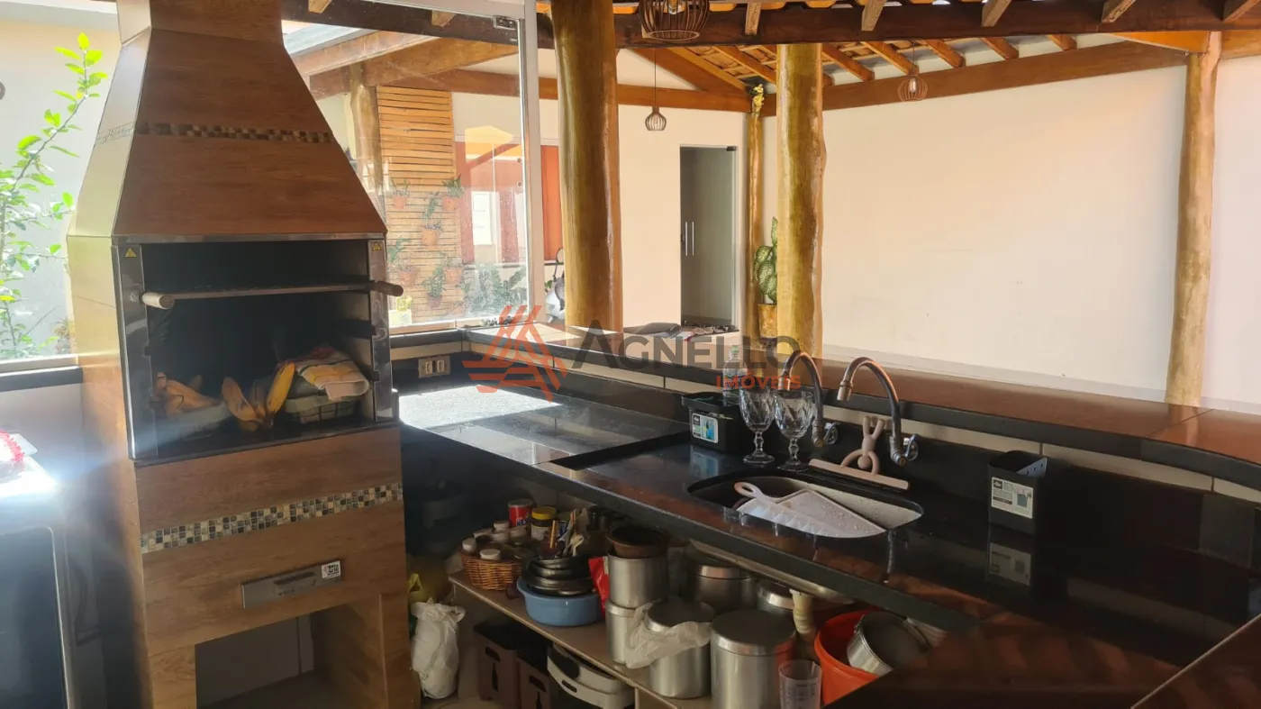 Com três dormitórios sendo uma suíte, banheiro social, sala, cozinha, lavanderia, varanda gourmet com banheiro, jardim e garagem para 4 carros sendo 2 vagas cobertas.